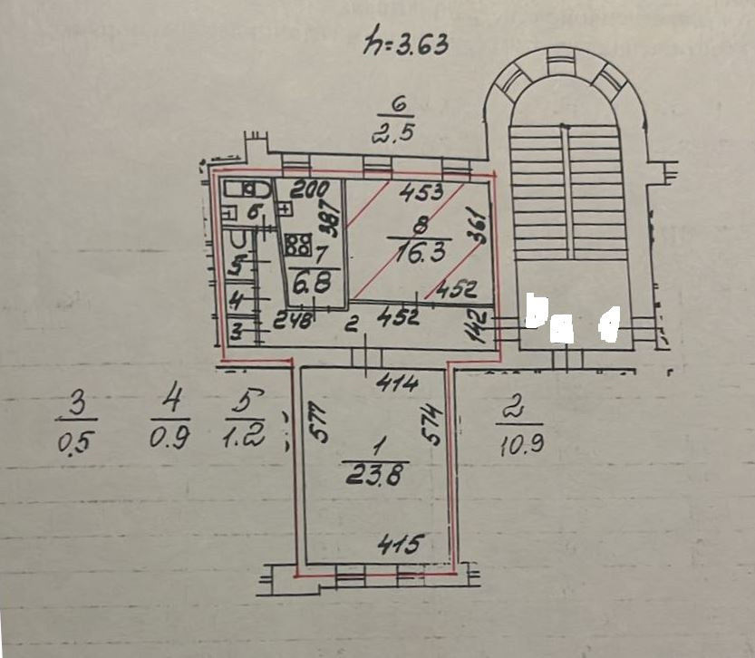 Высота потолков 3.63 м