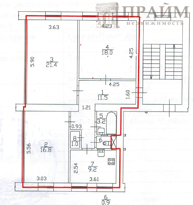 Жилая площадь 56.2 м2