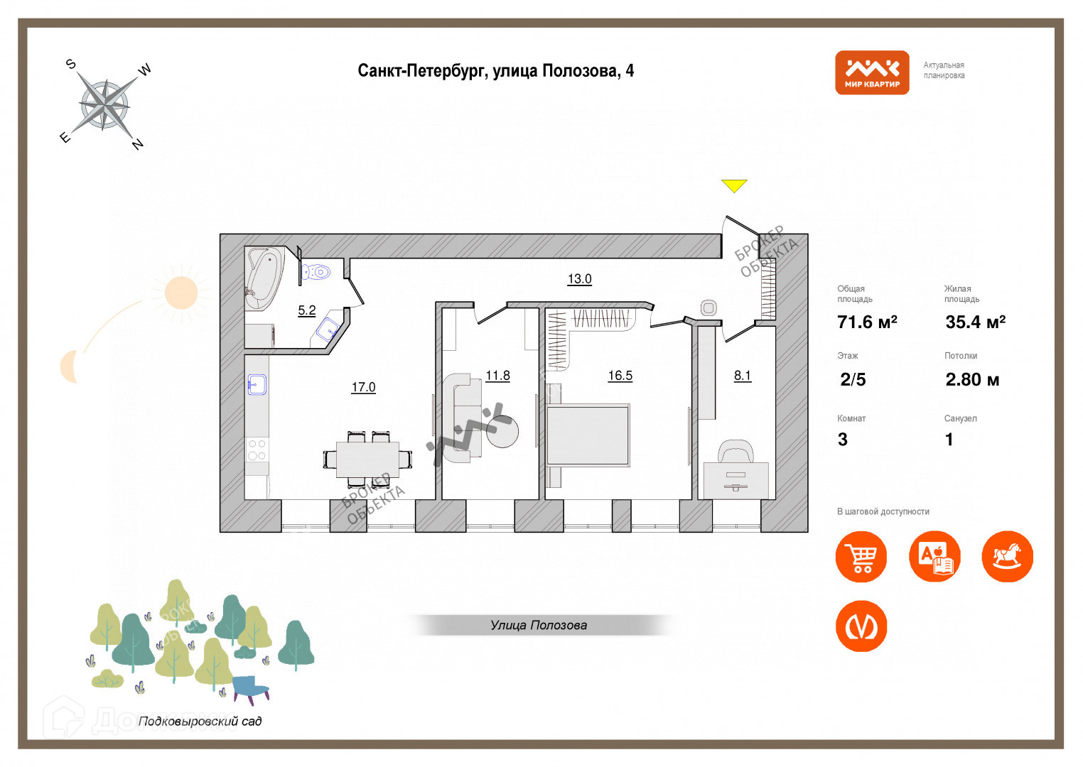 Прекрасный район с отличной развитой социальной инфраструктурой, транспортной доступностью и множеством зеленых зон, рядом Подковыровский сад.