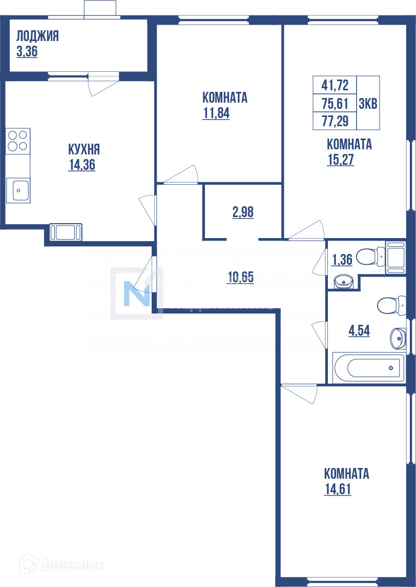 Общая площадь 77.3 м2