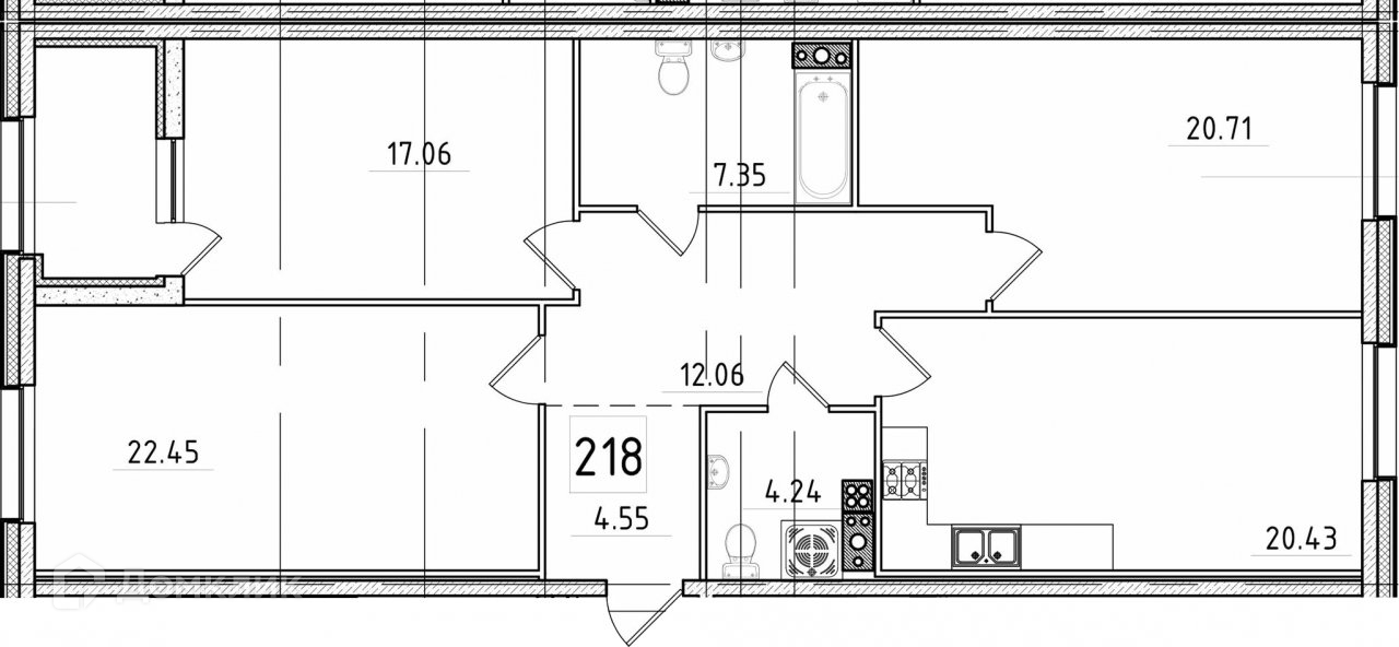 Продаётся квартира в новом доме класса элит.  Жилой комплекс находится на Петровском острове, на берегу реки Малая Нева. В пешей доступности расположены 2 детских сада, стадион «Петровский», яхт-клуб, парк аттракционов, магазины, отделения почты и банков, спортивные и медицинские учреждения. Метро «Крестовский остров» находится в 20 минутах пешком.