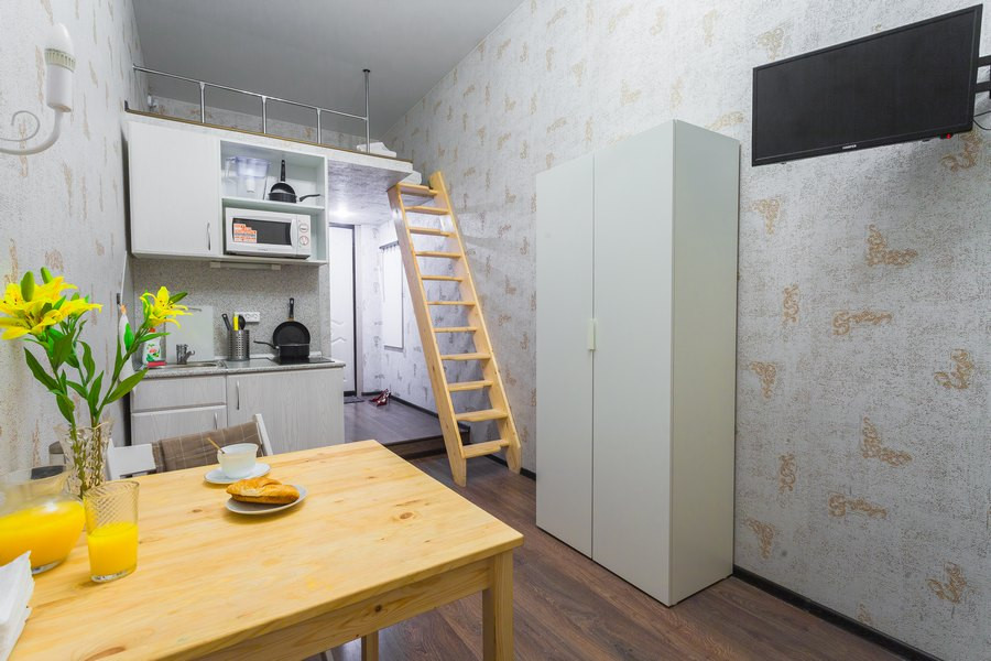 ➡️ Студия имеет 2 уровень, где расположено спальное место