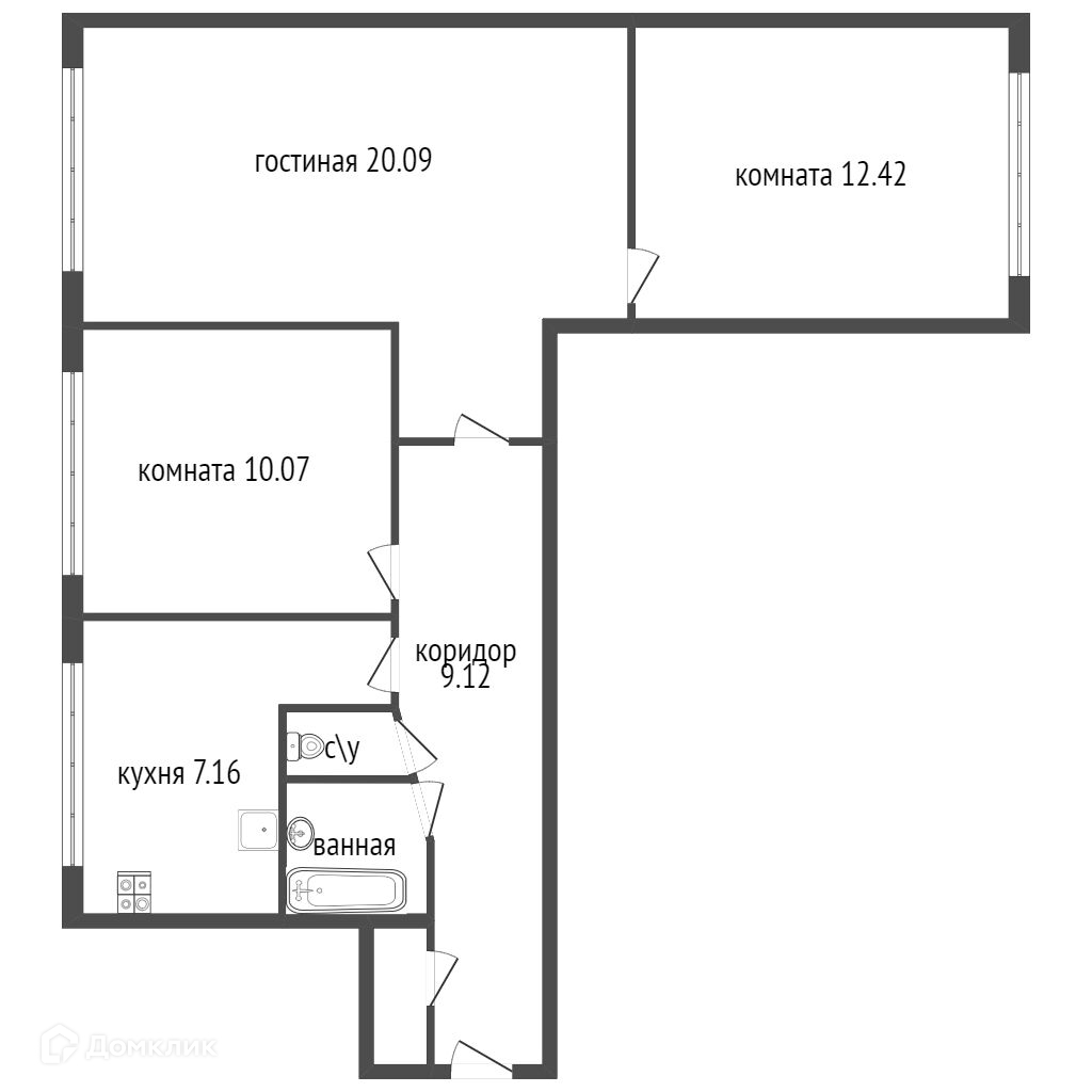3-комнатная квартира, 58 м2, этаж 9 / 9, на продажу в Санкт-Петербурге, улица Крыленко, 7к1