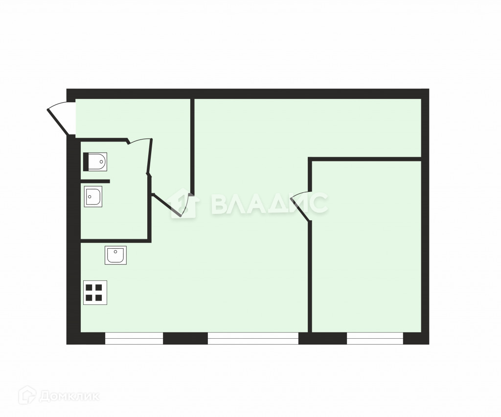 Общая площадь 42.2 м2