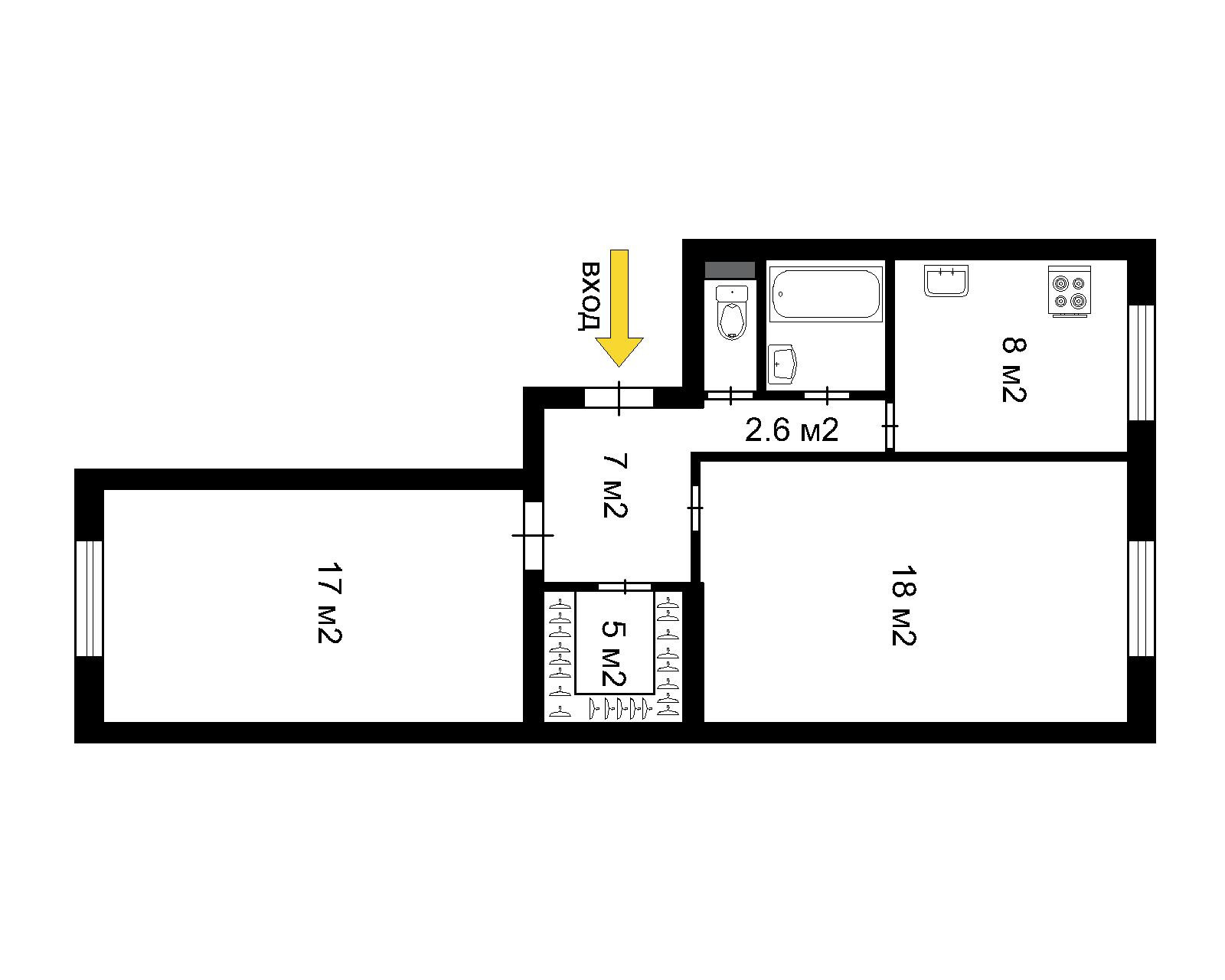 Общая площадь 55 м2