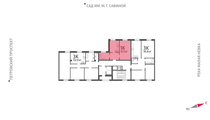 1-комнатная квартира, 51.4 м2, этаж 2 / 9, на продажу в Санкт-Петербурге, Петровский проспект, 9
