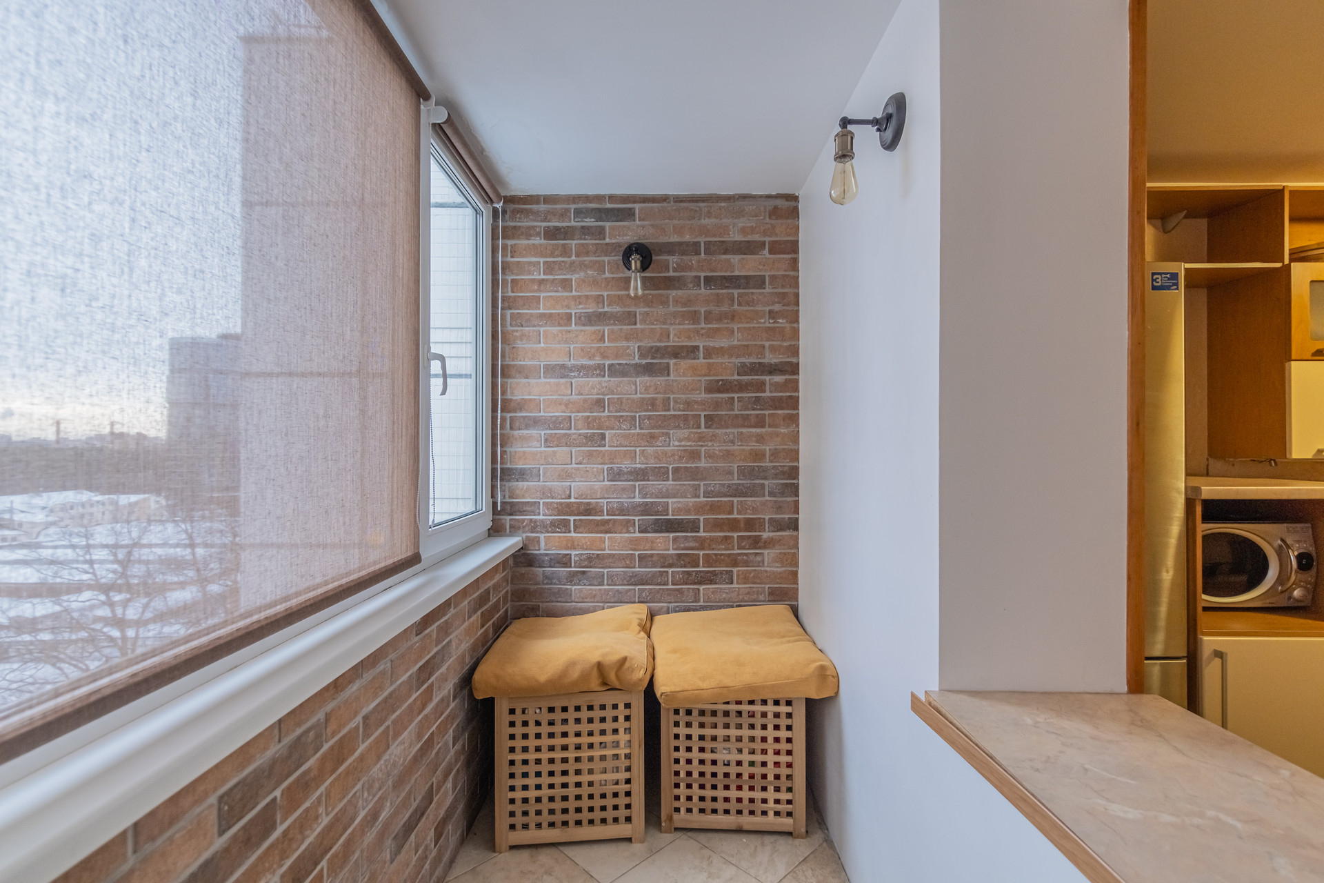В квартире есть очень уютная и просторная лоджия. Площадь позволяет сделать из нее настоящую зону отдыха. Она оборудована теплым полом, вы сможете проводить там время не только летом, но и зимой.
