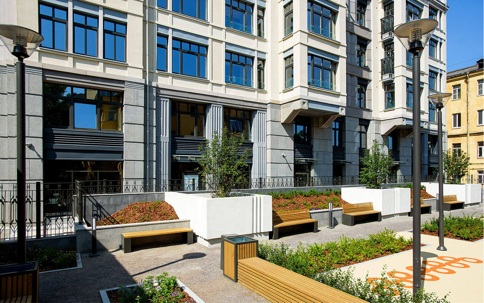 Классическая архитектура, натуральный камень в облицовке в духе Петербурга.