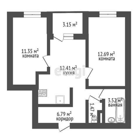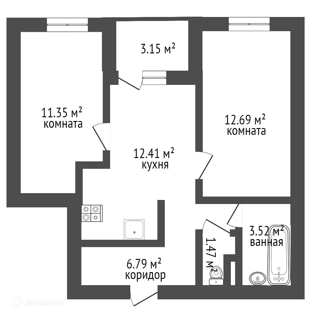 Площадь кухни 12.41 м2
