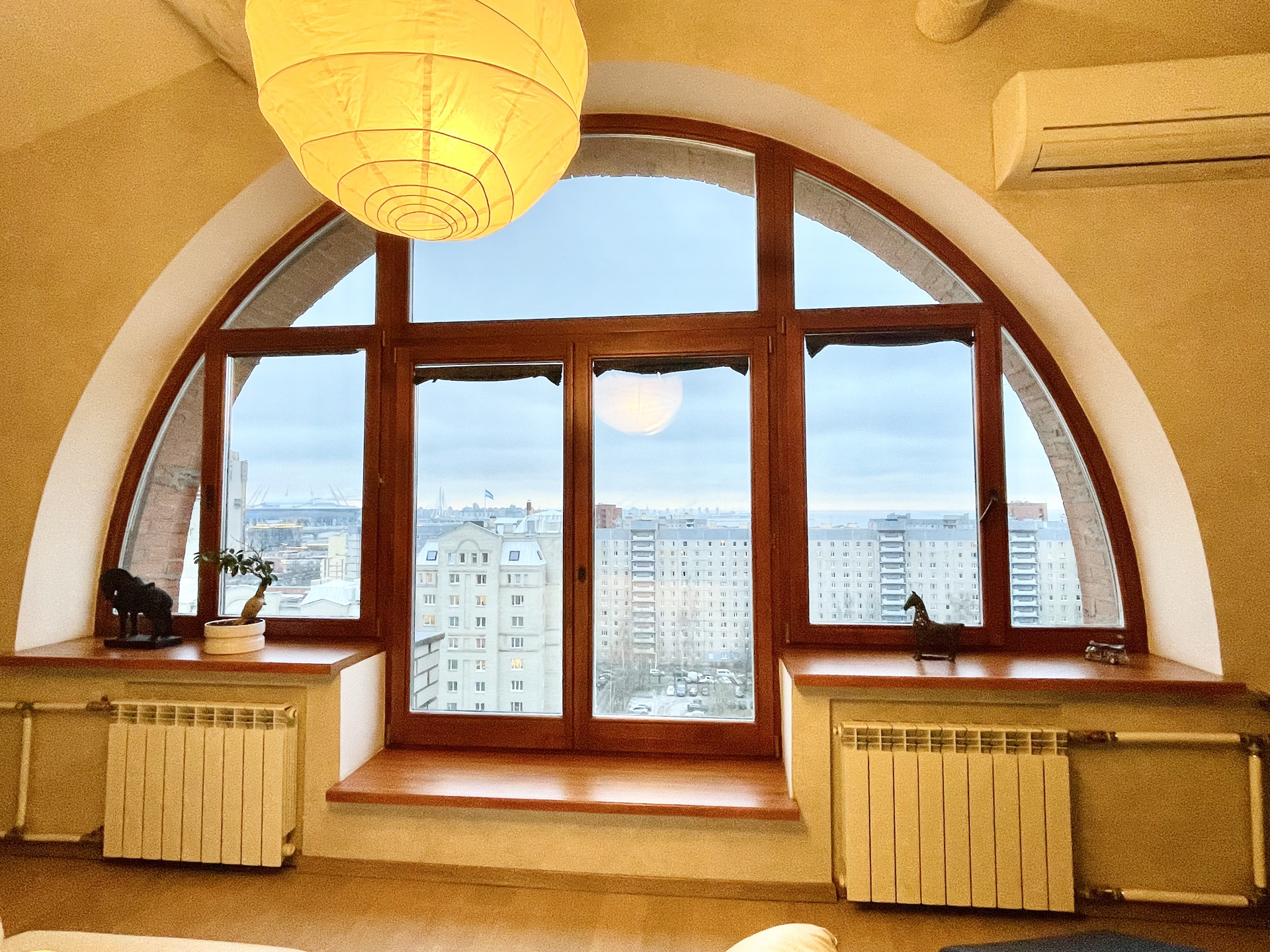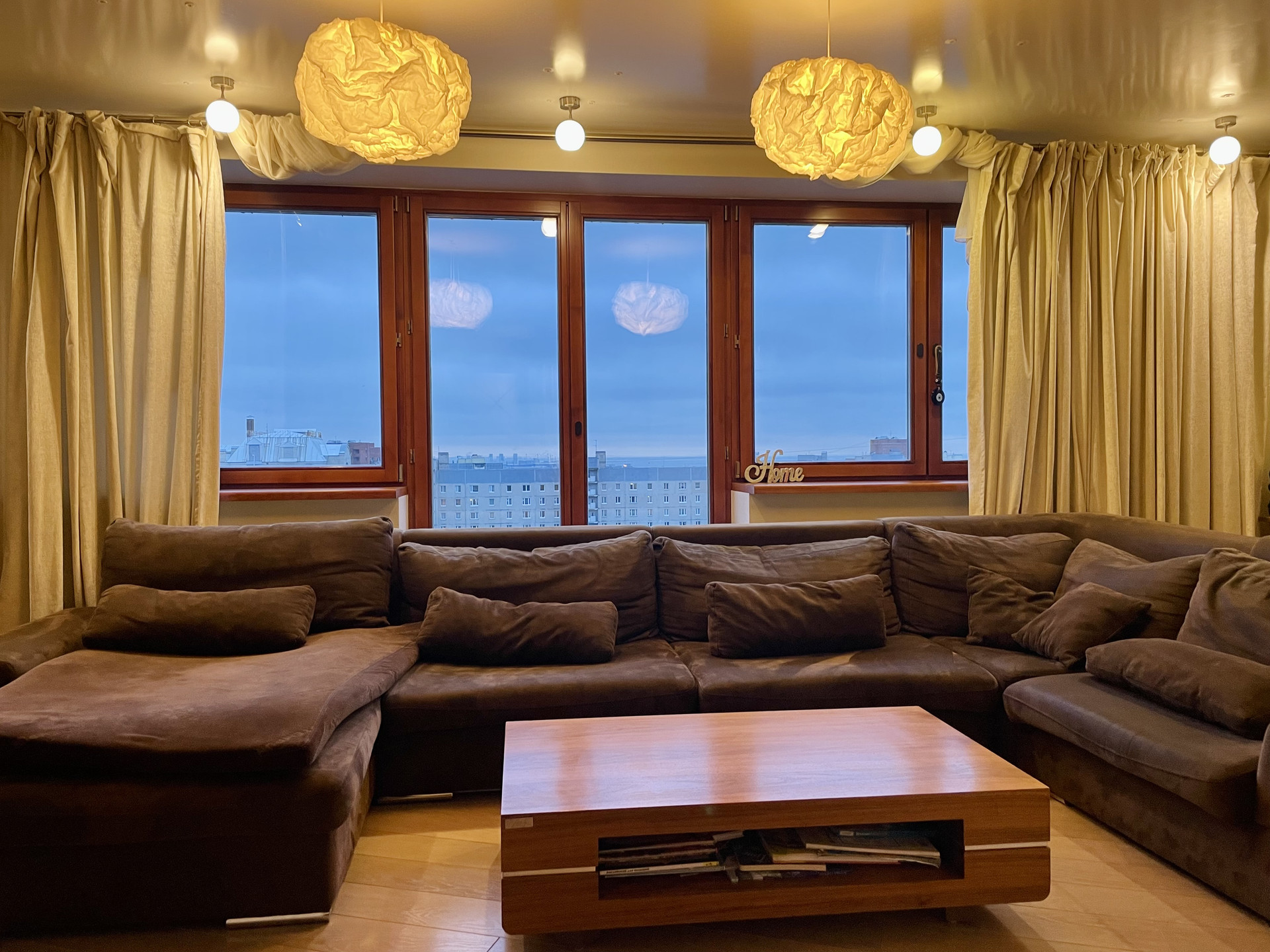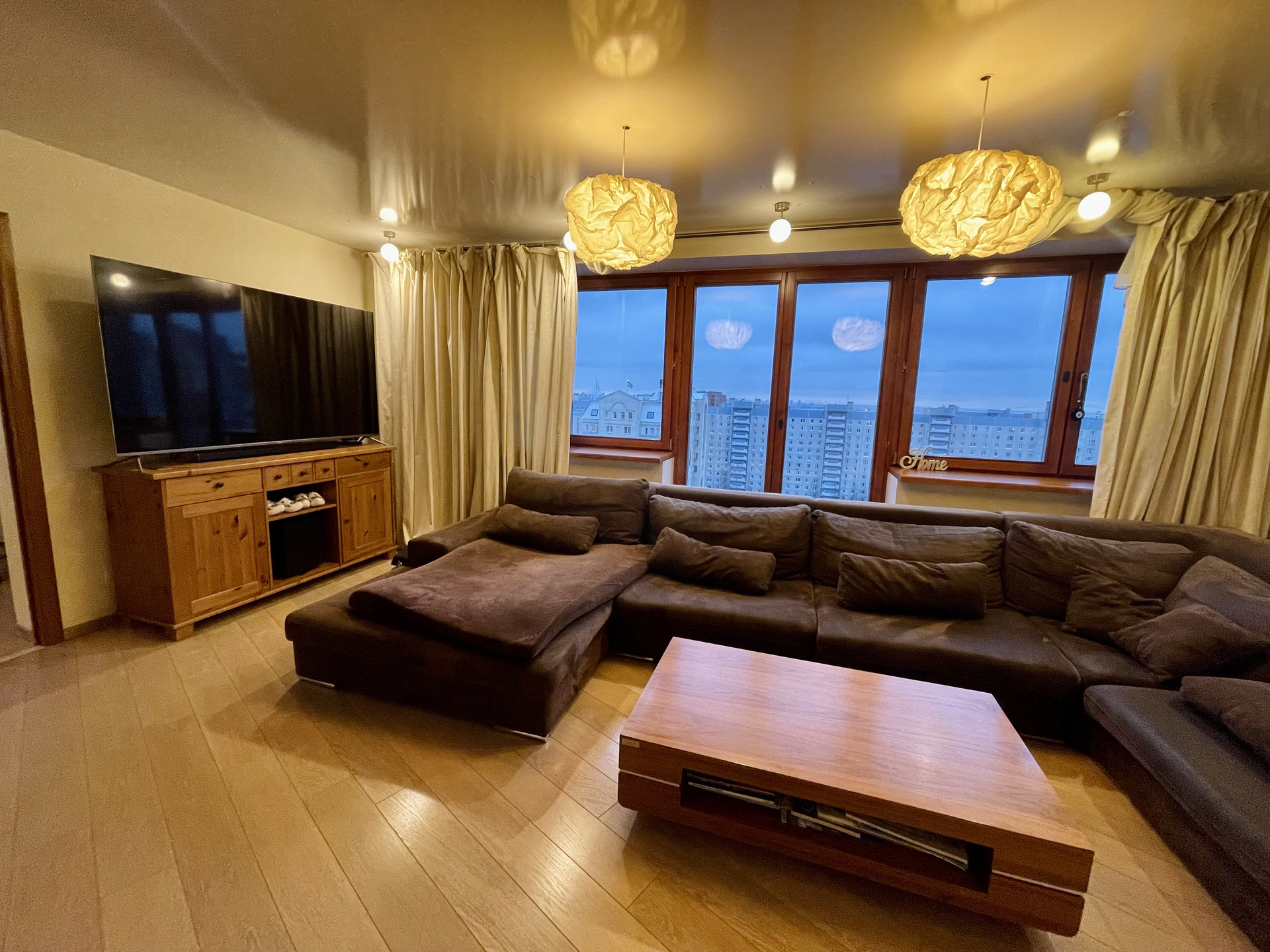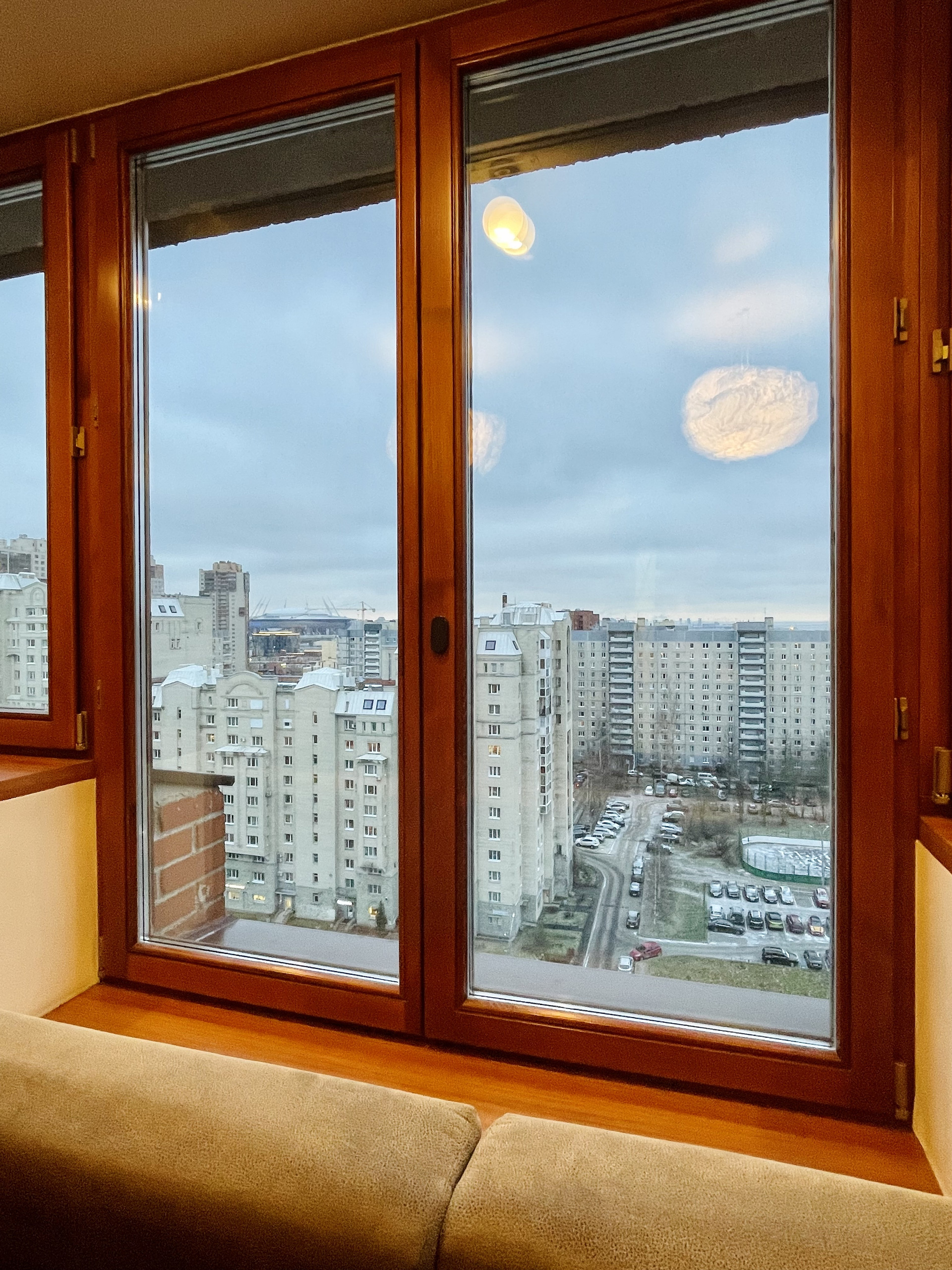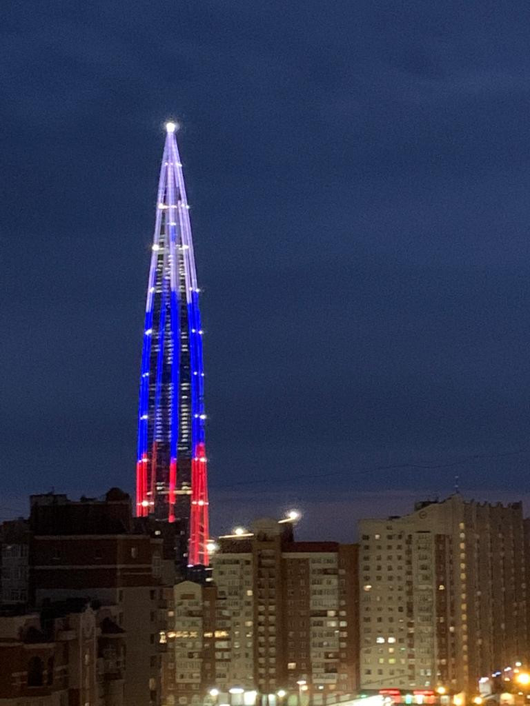 - Шикарная гостиная с захватывающим панорамным видом на Лахта Центр, стадион «Газпром Арена» и финский залив;