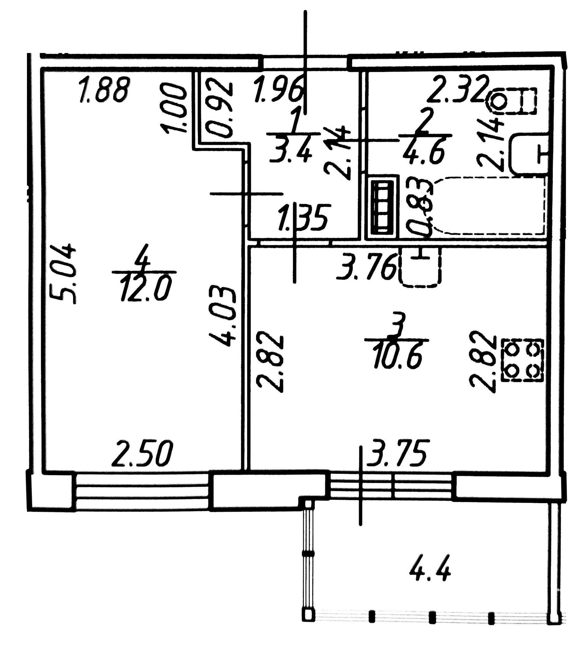 Удобная планировка: кухня 11 кв. м, спальня 12 кв. м, большой санузел 4.6 кв. м и лоджия 4.4 кв. м с панорамным остеклением.