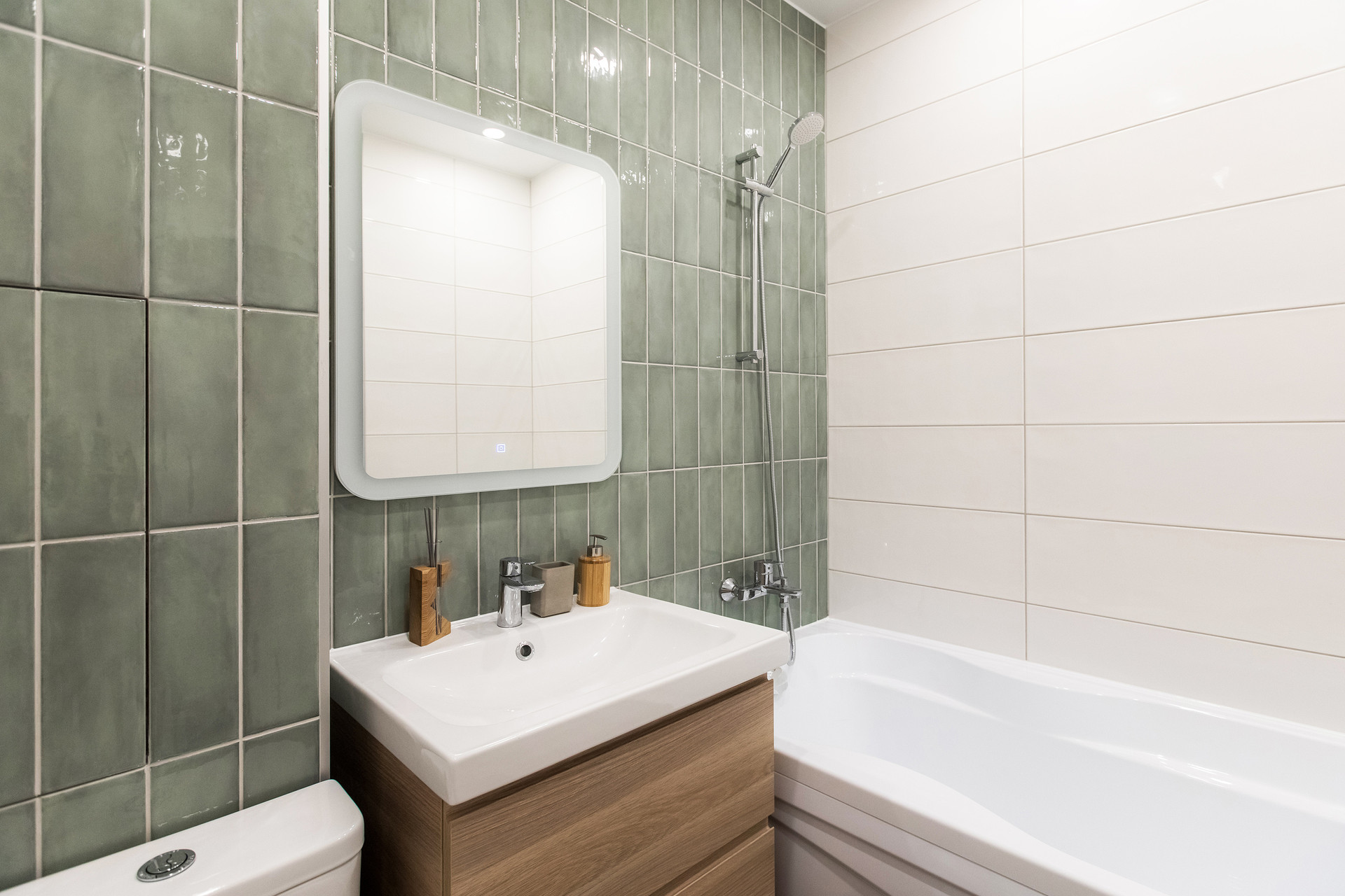 Качественная сантехника Grohe, в санузле теплые полы и удобная система освещения, продуман доступ к коммуникациям с помощью скрытого люка.