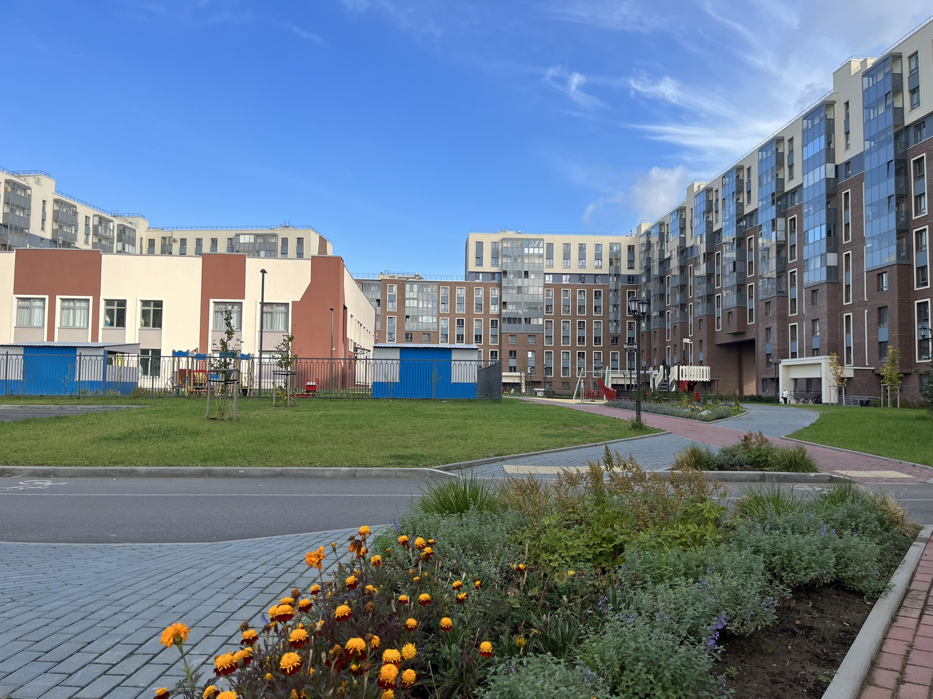 Современный и быстроразвивающийся район, всё необходимое уже есть в шаговой доступности: три корпуса Детских сада, две Школы, супермаркеты и магазины, торговый комплекс, аптеки, салоны красоты, детское отделение поликлиники, остановки общественного транспорта, 5 минут транспортом до ТРЦ Жемчужная плаза, 15 минут до Петергофа (парка и фонтанов), 20 минут до метро проспект Ветеранов, 10 минут пешком до Парка Новознаменка, в районе вообще много парков (Сосновая Поляна, Южно-Приморский) и поблизости Финский Залив.