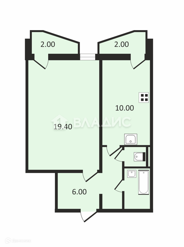 Жилая площадь 19.4 м2