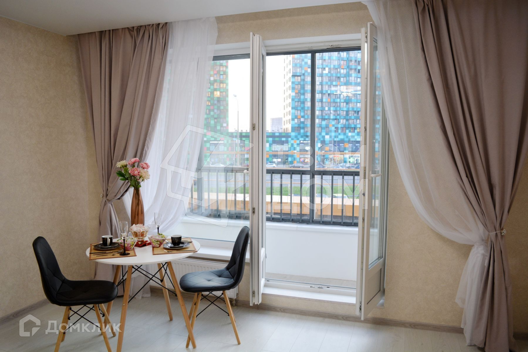 Светлая квартира-студия с панорамным остеклением, удобной, квадратной формы, хорошо подходит под любое зонирование. Увеличенные окна, распашная дверь на большую застеклённую лоджию.