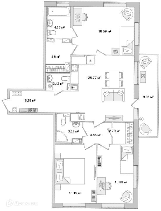 Площадь кухни 25.77 м2