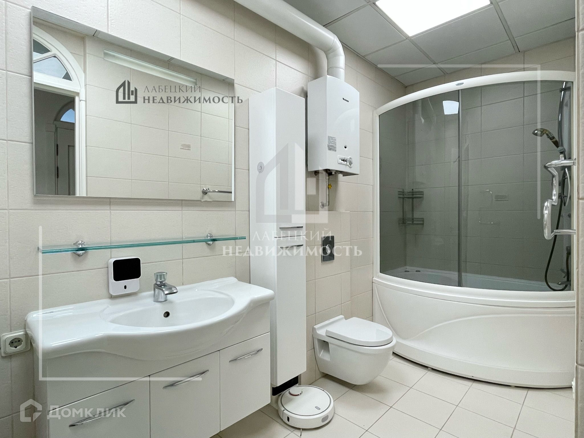 - Один с/у совмещённый (5.5 м²) с ванной-душевой, с ТЁПЛЫМ ПОЛОМ (отдельный выключатель, 3-я зона в квартире), с дорогой сантехникой,