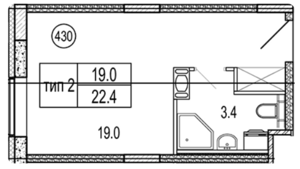 Общая площадь 22.4 м2