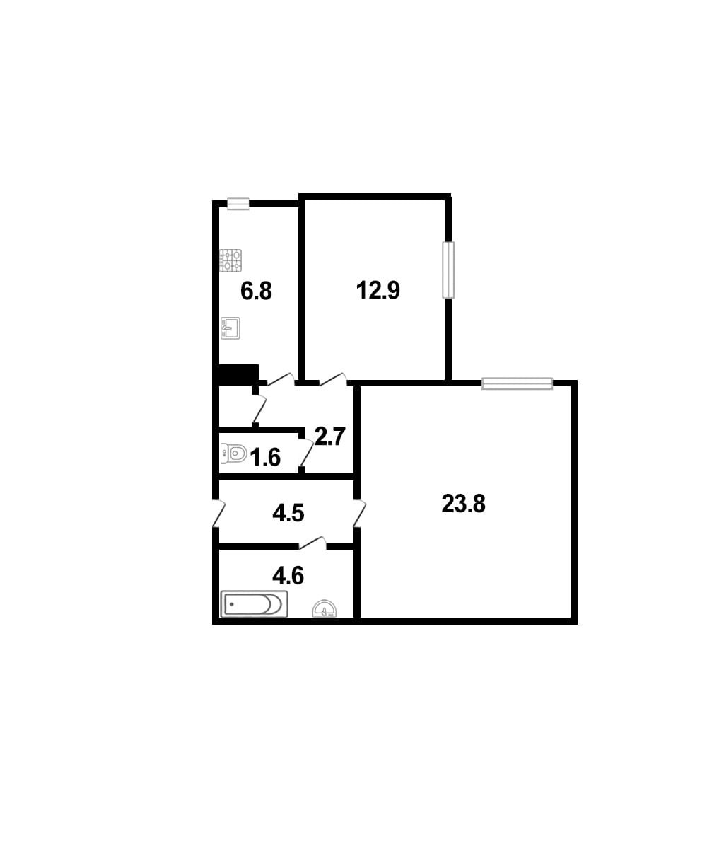 Жилая площадь 36.6 м2