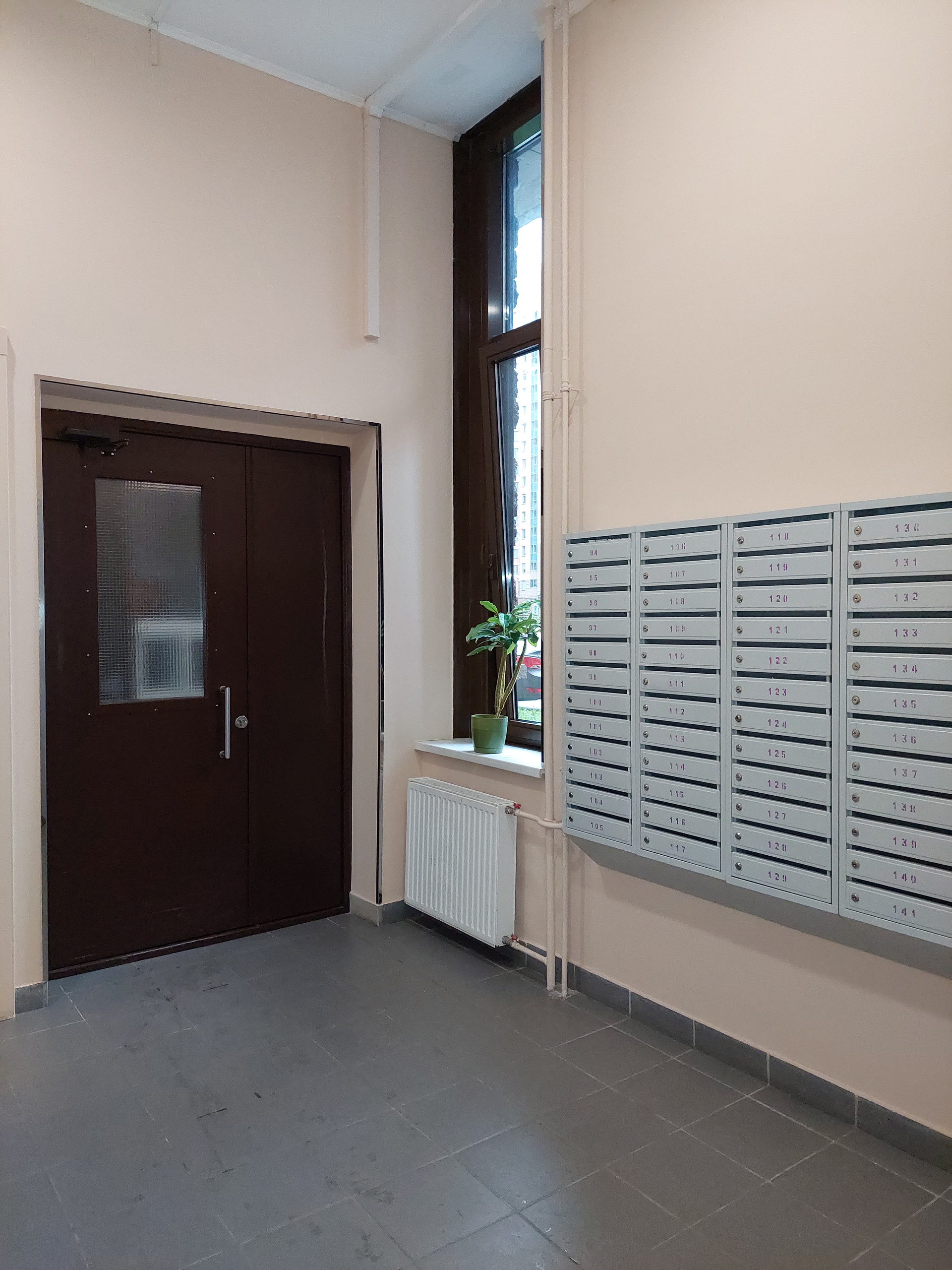 Высокий второй этаж (на уровне третьего в обычном доме). Окна смотрят на запад, в промежуток между корпусами. Солнце во второй половине дня. Спокойные, доброжелательные соседи. Семь квартир на этаже. Чистый подъезд с видеонаблюдением. Внимательная управляющая компания.