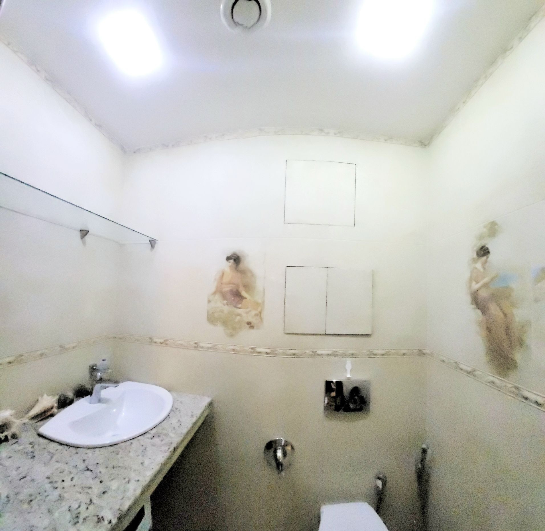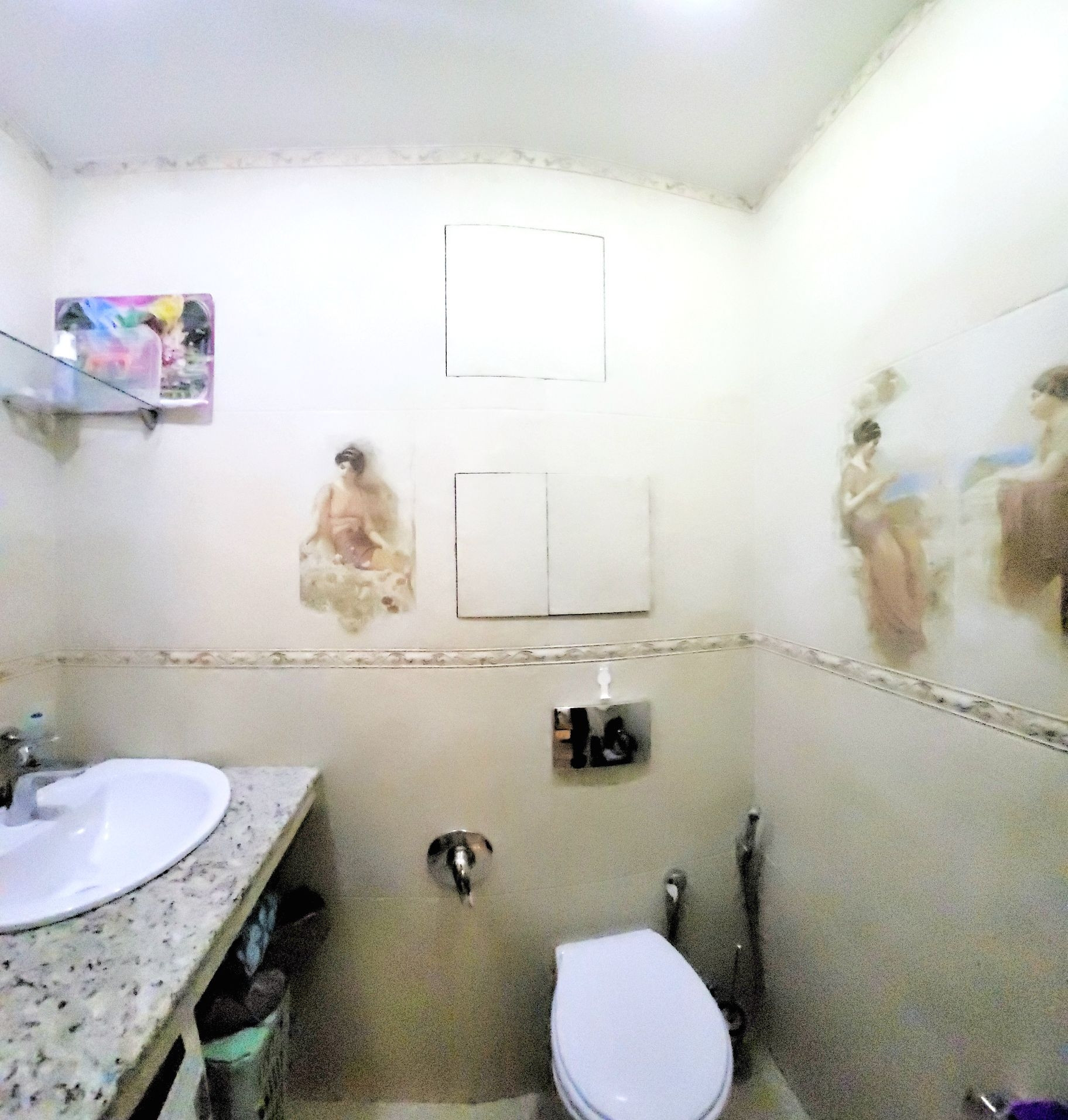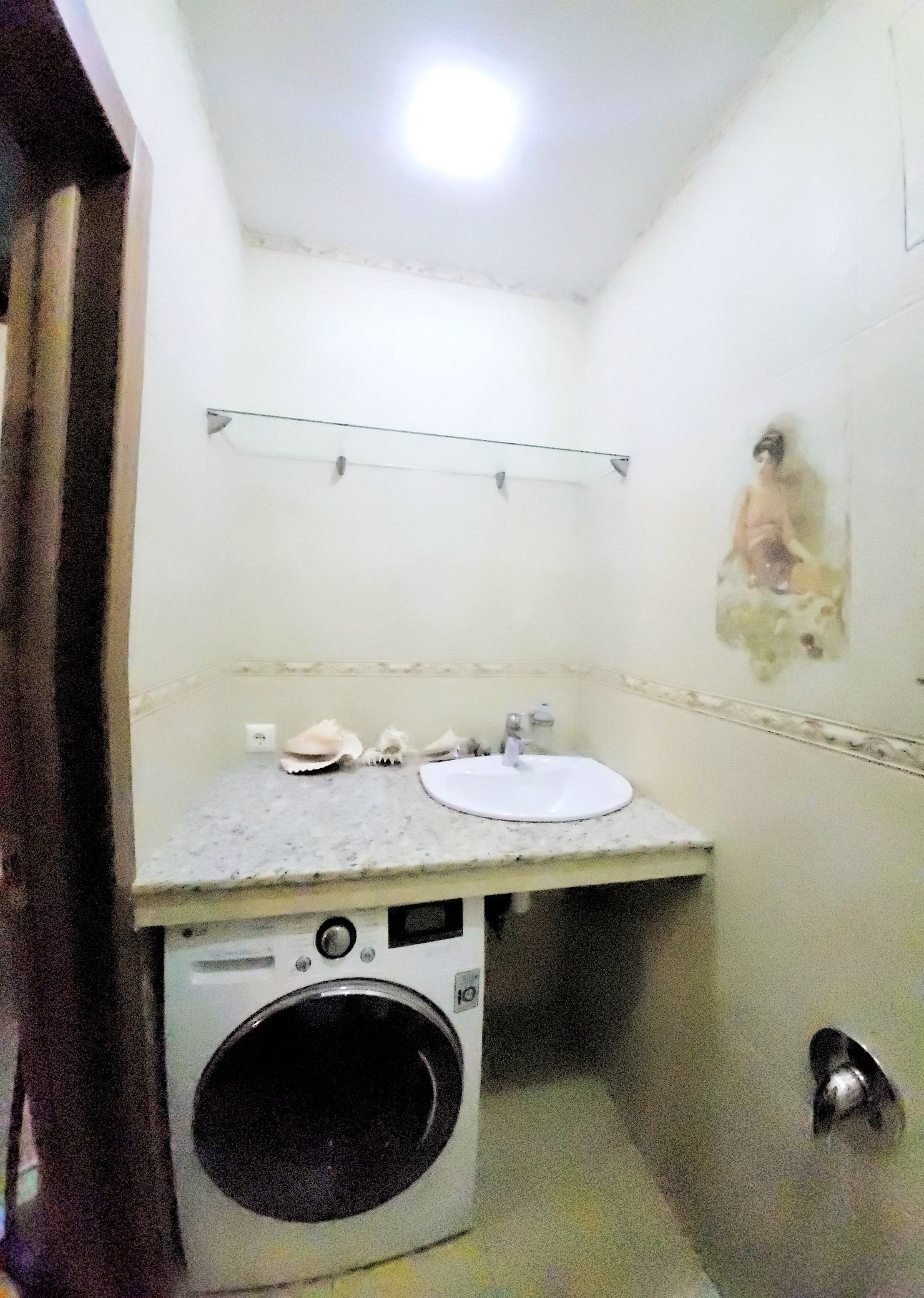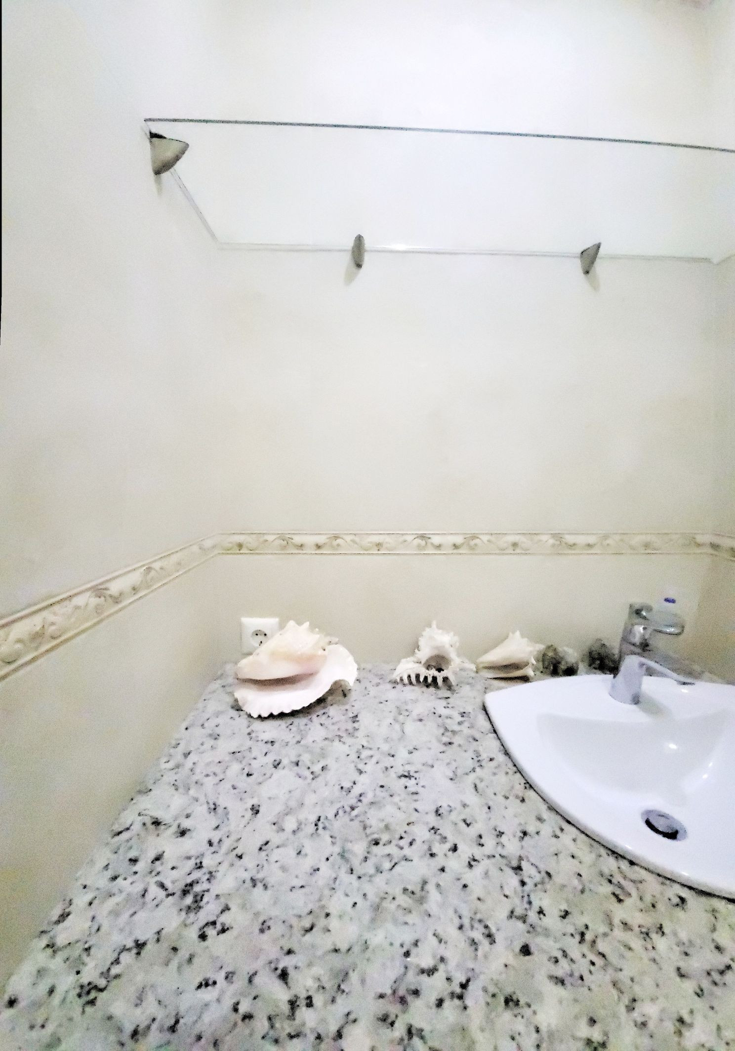 - В санузле столешница из натурального мрамора