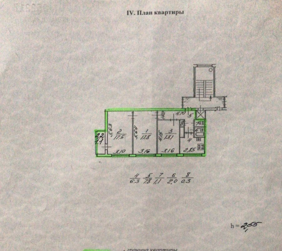 Высота потолков 2.55 м