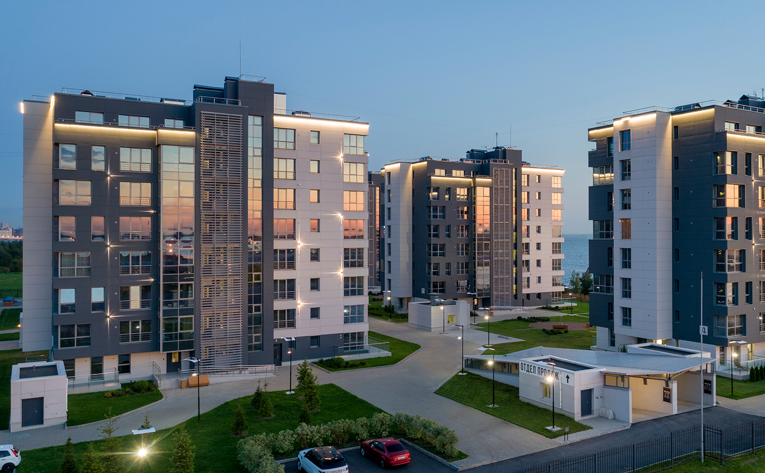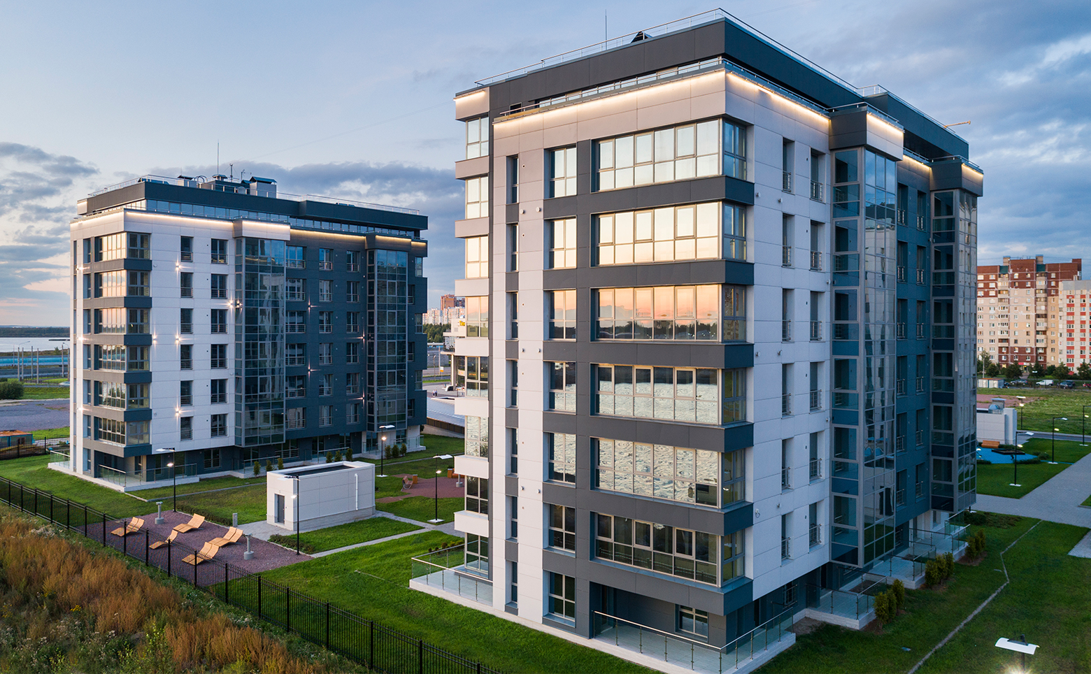 Проект «Лахта Плаза» представляет собой комплекс апартаментов. Всего спроектировано 5 домов высотой 8 этажей. В местах общего пользования выполнена дизайнерская отделка.