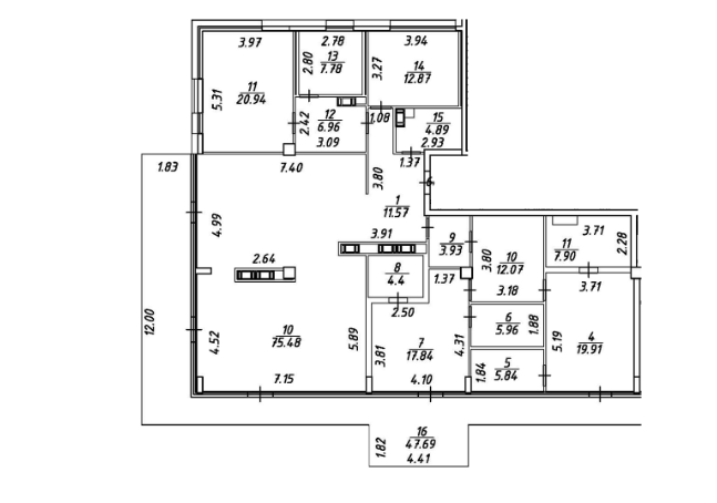 Площадь кухни 75.48 м2