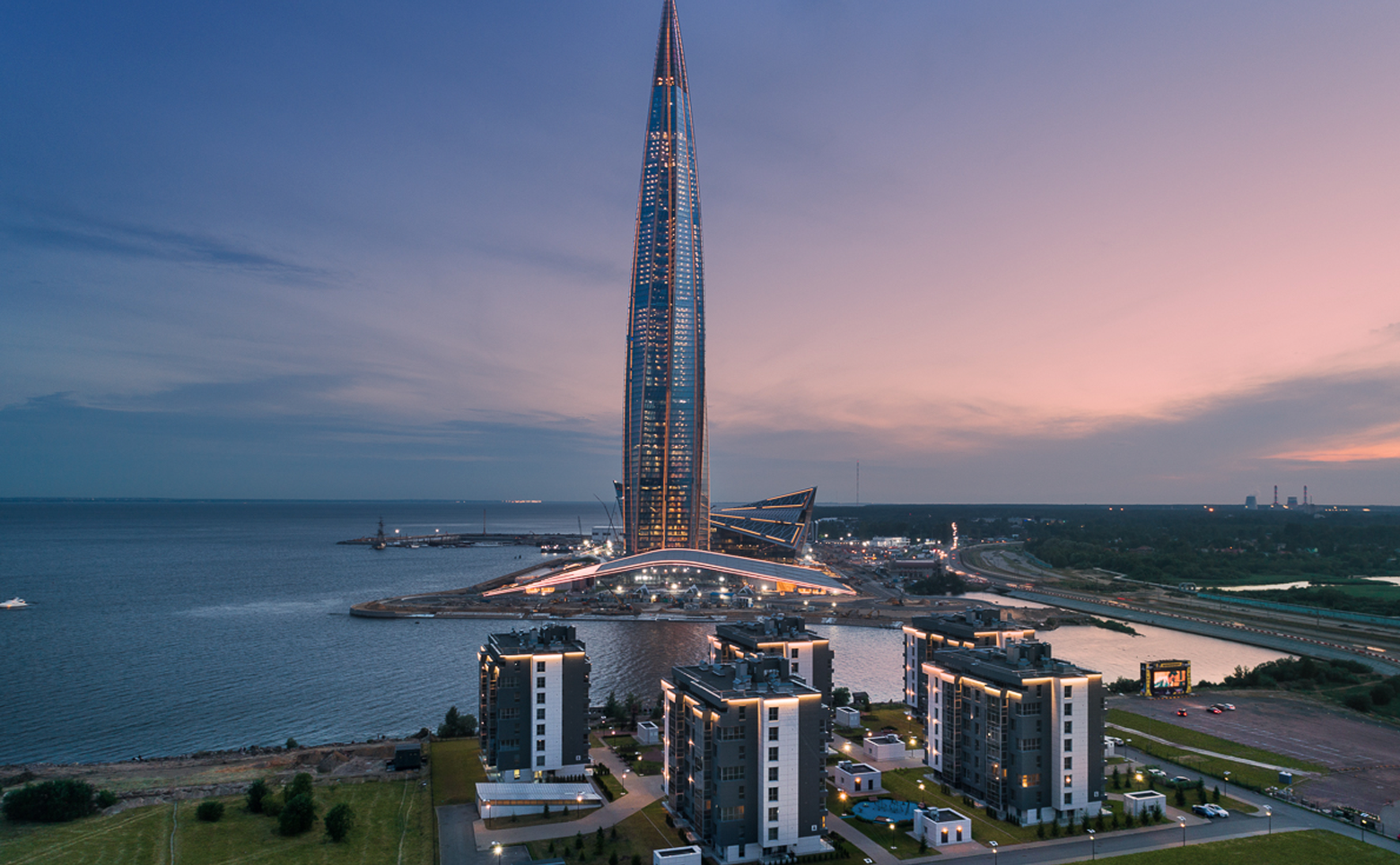 Комплекс находится на берегу Финского залива в непосредственной близости от парка 300-летия Санкт-Петербурга. Метро «Беговая» расположена в 10 минутах пешком.