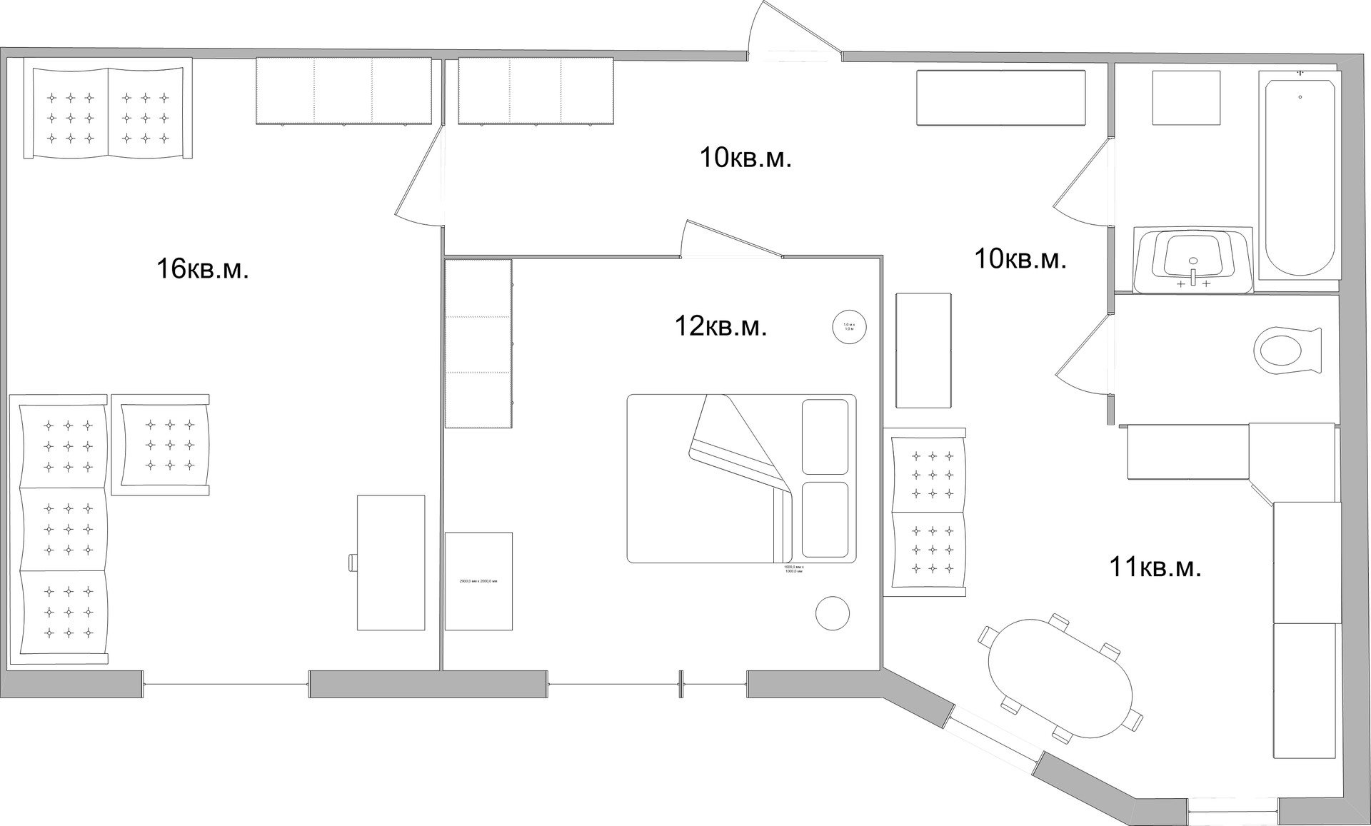 Площадь кухни 11 м2