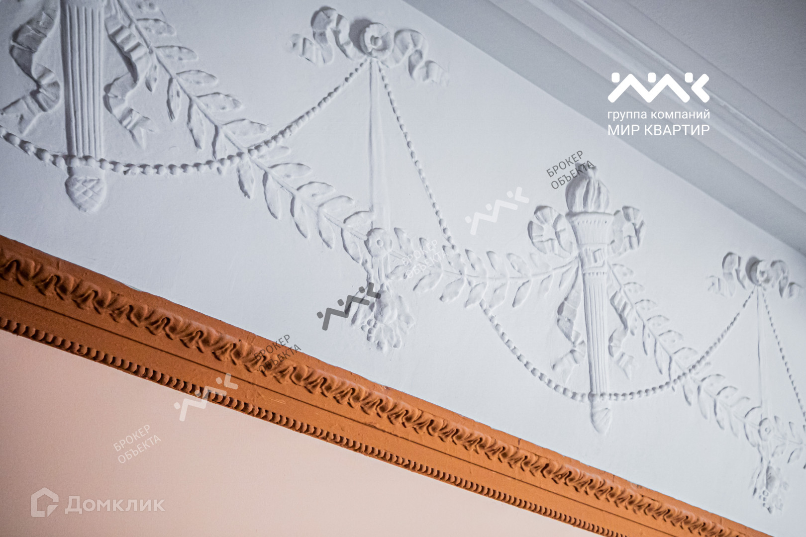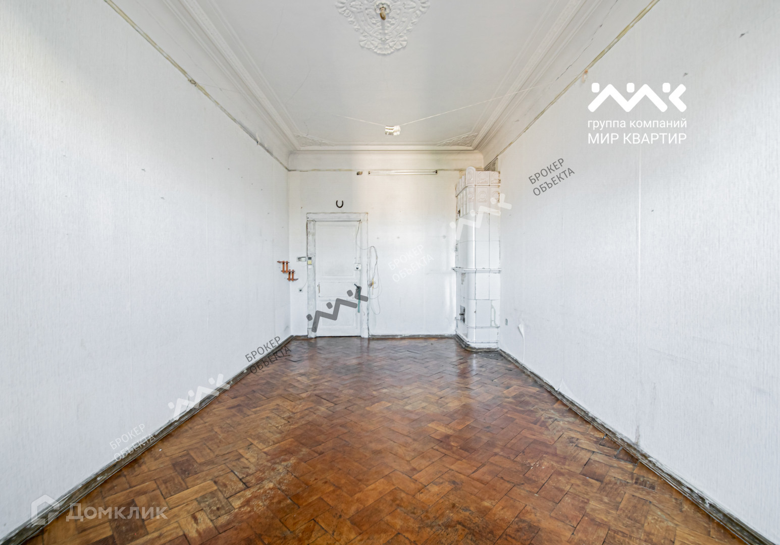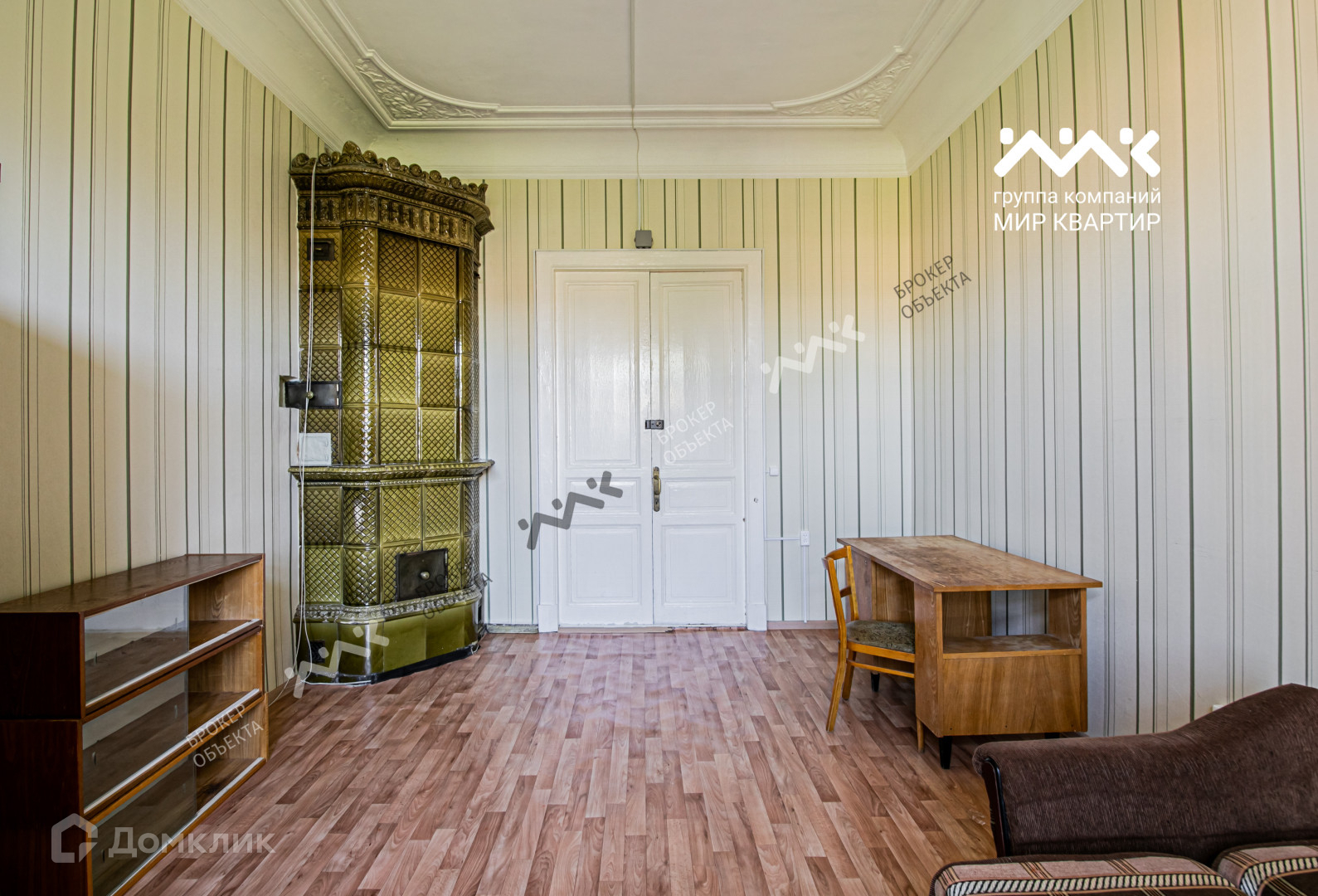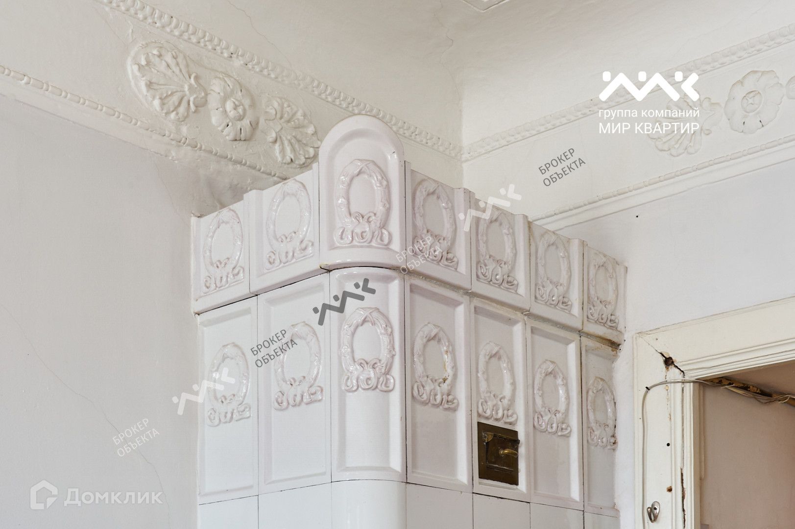 В каждой комнате изразцовые печи, лепнина. Центральная горячая вода.