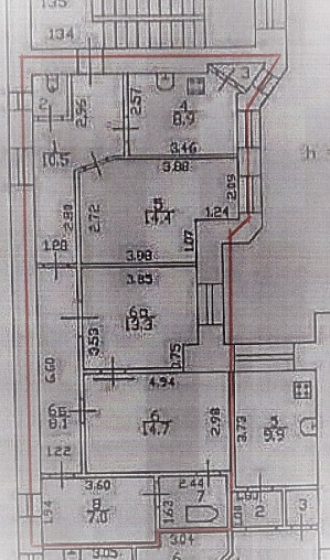 На фото с красными линиями представлен примерный план перепланировки.