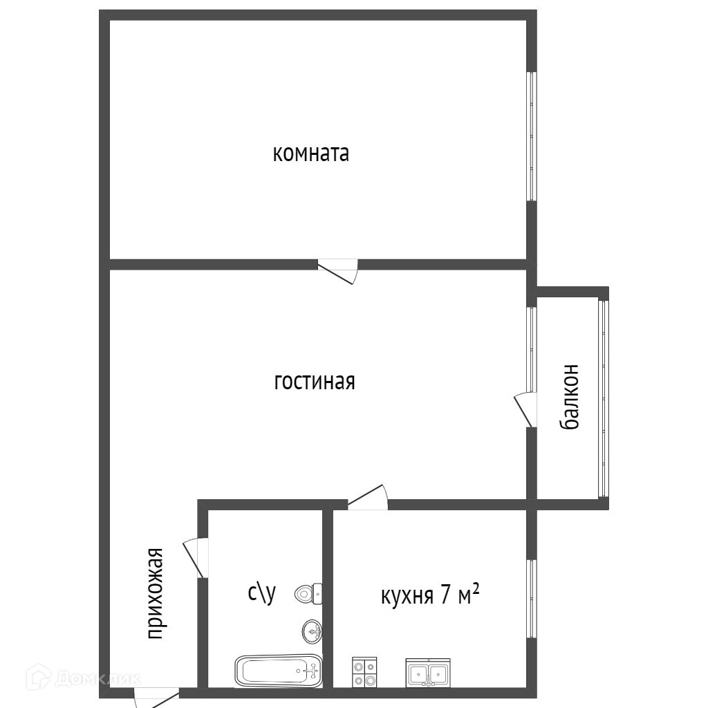Общая площадь 43 м2