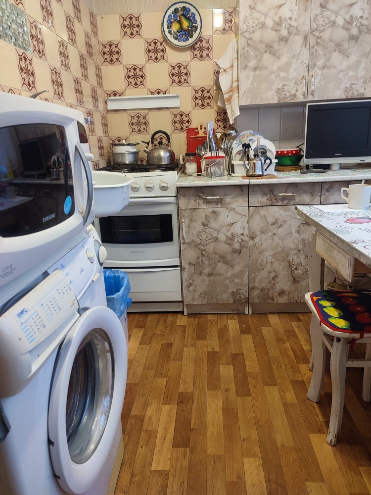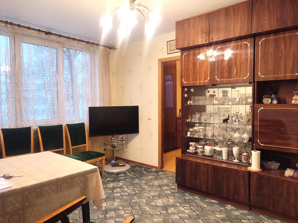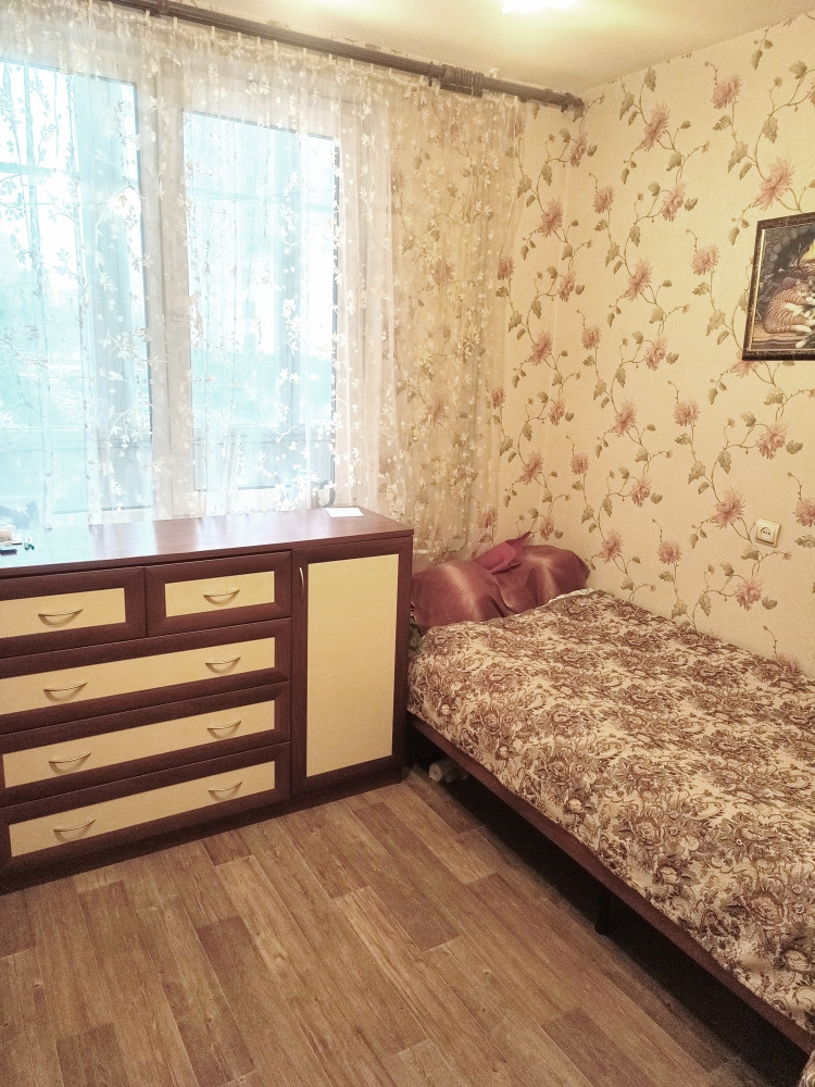 В доме ЖСК от рождения предлагается к покупке удобная трехкомнатная квартира с двумя отдельными спальнями по 10м2  со входом из общей гостинной 15.2м2 и лоджией 6м2. Установлены качественные стеклопакеты. Заменены батареи. В спальнях ламинат и линолеум. В гостинной ковролин, натяжной потолок. В прихожей вместительная кладовка и зеркальный шкаф купе, линолеум. Квартира полностью укомплектована всей необходимой мебелью и техникой, которые остаются в подарок покупателю.