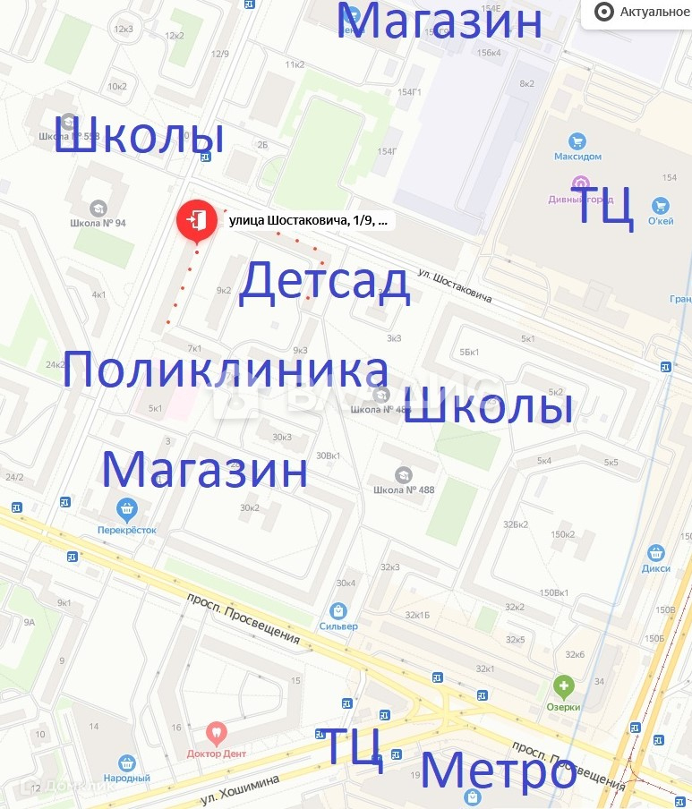 Крупный ТЦ (гранд каньон): 5мин пешком, 500м.