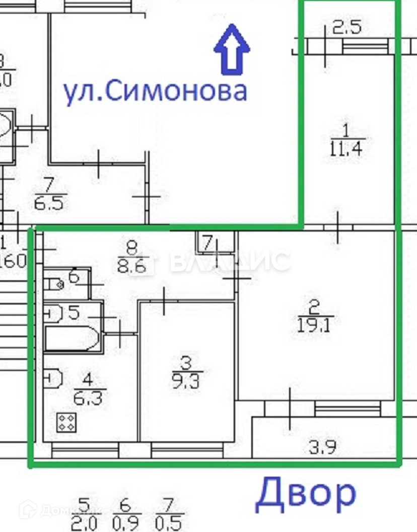 Общая площадь 58.1 м2