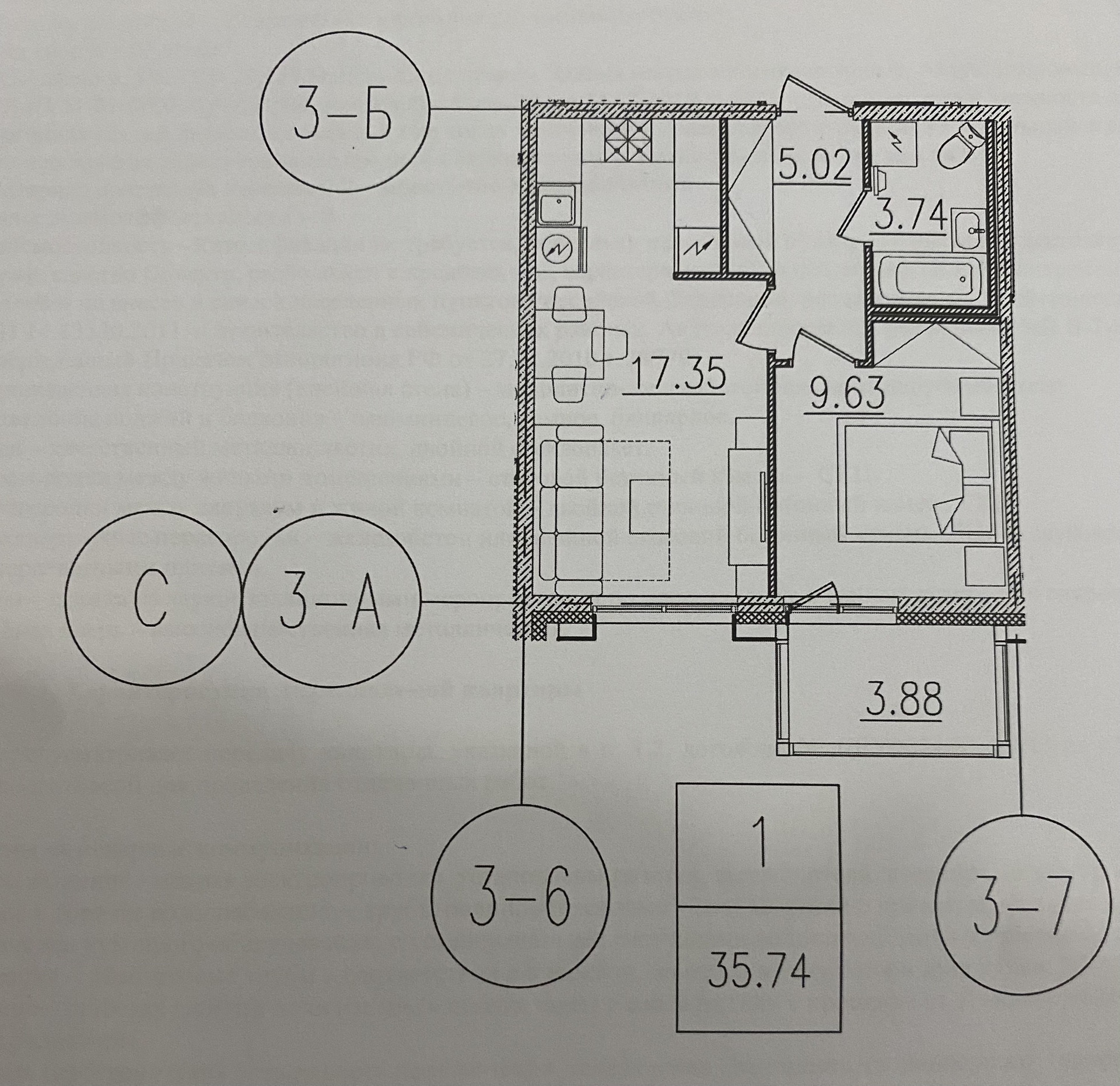 Общая площадь 35.7 м2