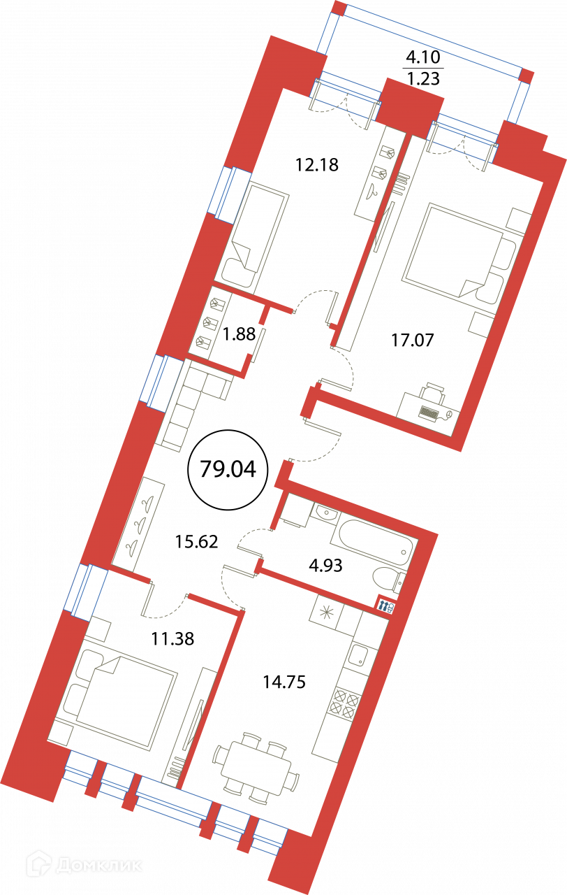Общая площадь 79.04 м2