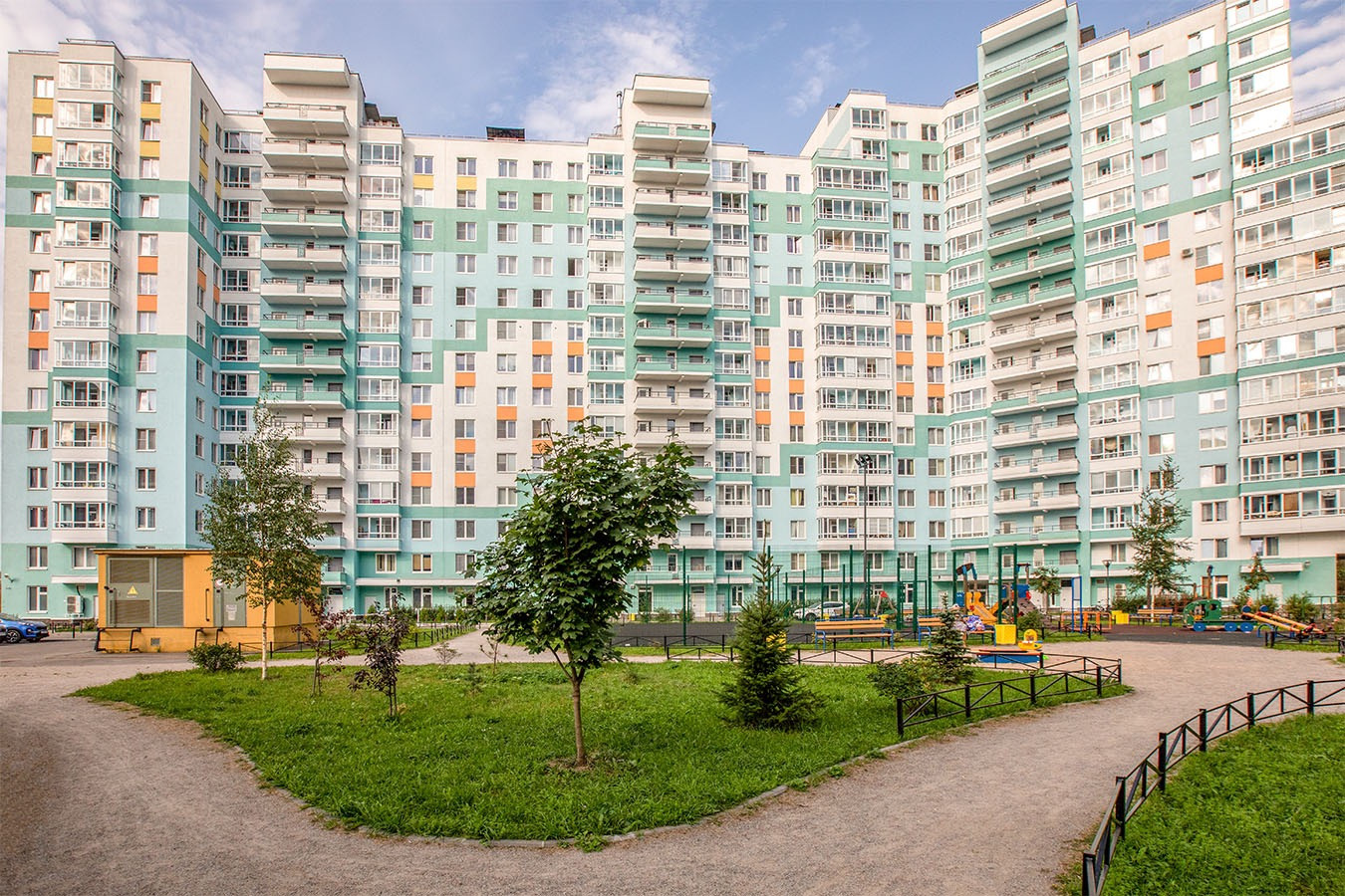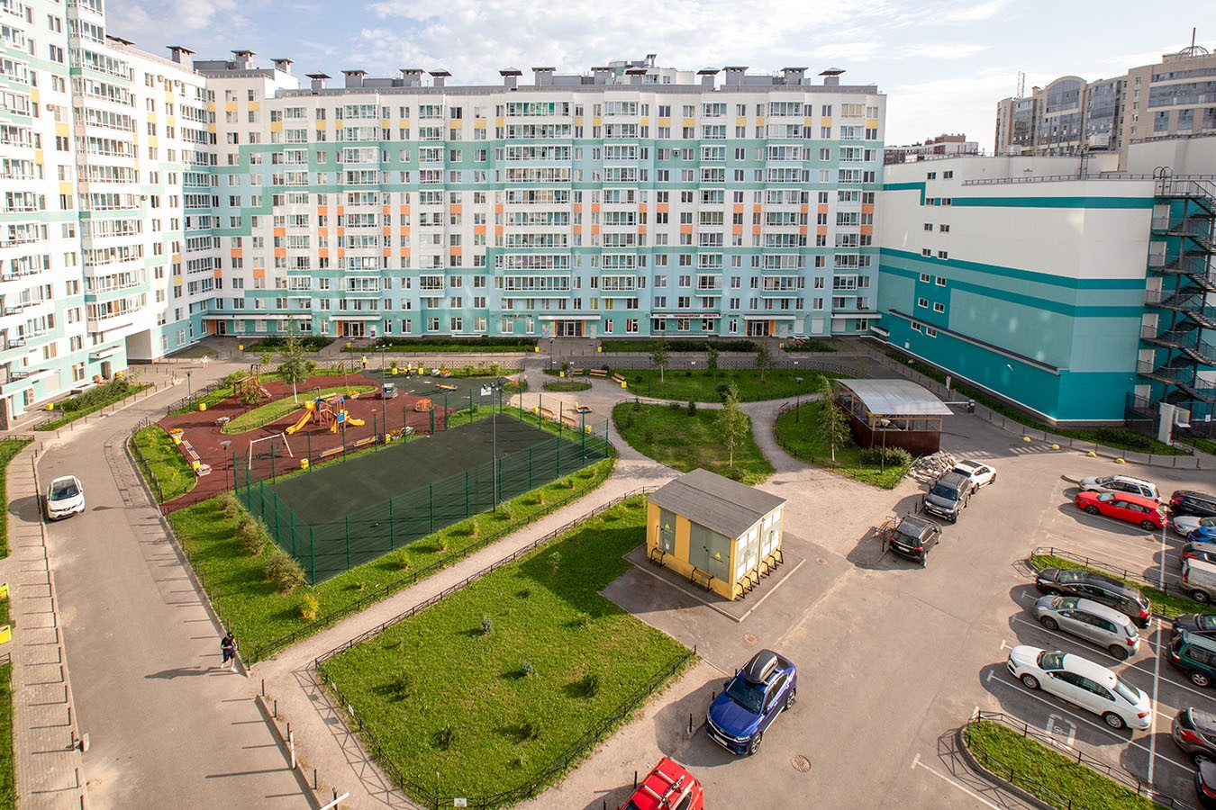 Вся территория комплекса оборудована видеонаблюдением. Двор закрыт от машин, рядом с домом есть гостевая парковка и многоуровневый паркинг, в котором есть места как для аренды, так и для покупки. В пешей доступности лицей, рядом строится детский сад. В соседнем доме тренажерный зал с бассейном Fitness House. Разнообразные современные детские площадки у каждого дома. Для прогулок и отдыха – Любашинский парк и парк лесотехнической академии.