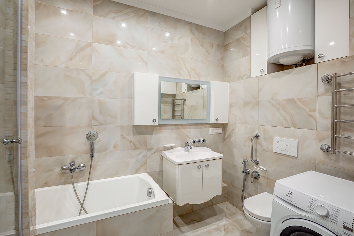 Кухня-гостиная и две изолированные комнаты. Дорогая отделка по дизайн-проекту, в коридоре, кухне и ванной комнате – плитка с подогревом с беспроводным управлением. Остаётся полностью вся мебель, кухня IKEA со встроенным духовым шкафом и электрической варочной панелью, микроволновая печь Gorenje, вытяжка, посудомоечная машина 60см, холодильник Whirlpool, на кухне диван, ТВ Samsung 7 серии и саунбар JBL, фильтр для воды с обратным осмосом Xiaomi.Стиральная машина с сушкой Electrolux. Отличная сантехника и смесители GROHE. Все коллекторные узлы с фильтрами для воды за скрытым люком в санузле, установлен накопительный водонагреватель на 80 литров. Детская комната с мебелью от Angstrem и матрасом Serta. Спальня с мебелью IKEA, кроватью Askona с матрасом Serta, в спальне остается топовый ТВ Samsung 9 серии с беспроводной тыловой акустикой Samsung и саундбаром Samsung. В коридорах также шкафы IKEA. На балконе два стеллажа. Ремонт из качественных материалов, вся проводка поменяна, установлено реле напряжения в щитке. Делали все для себя, вся мебель в отличном состоянии.