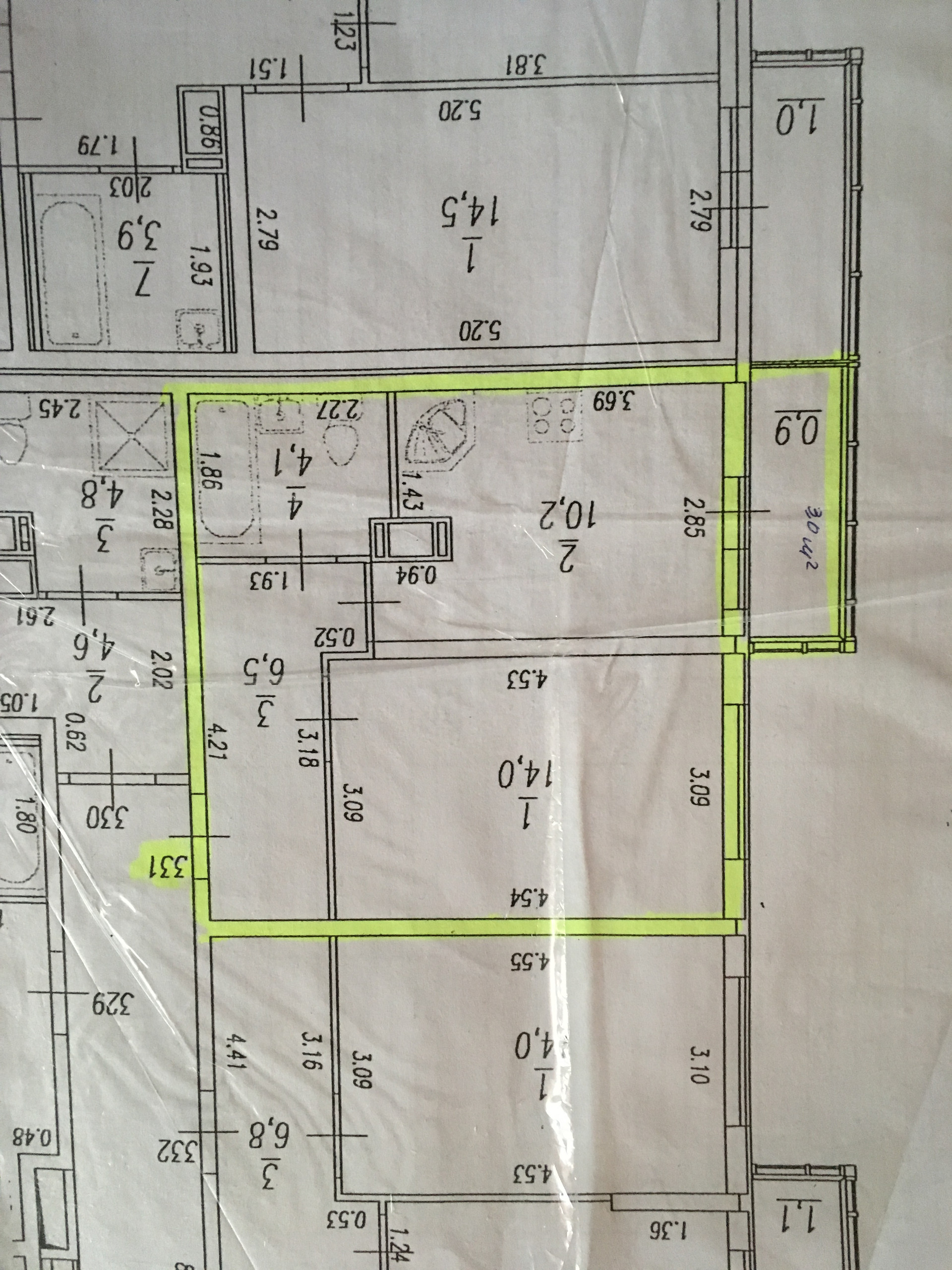 Площадь кухни 10.2 м2