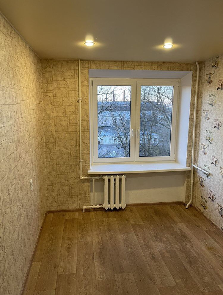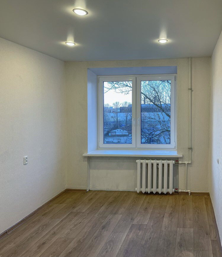 Окна выходят в зелёный двор.