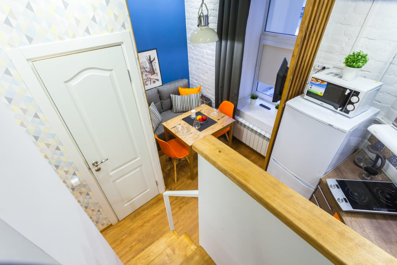 Мини-отель включает в себя 4 отдельные двухуровневые студии, в каждой из которых может комфортно расположиться до 6 человек. В каждой из студий имеется санузел и кухня.