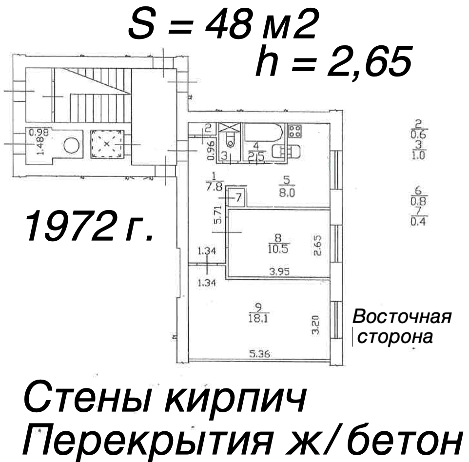 - кирпичный дом 72 года, ж\б перекрытия, потолок 2,65 м.;