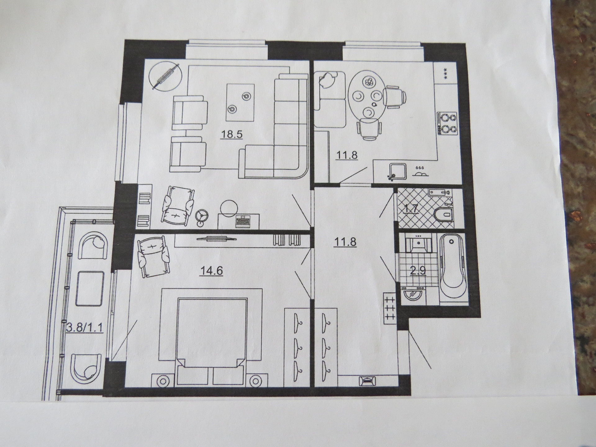Жилая площадь 33 м2