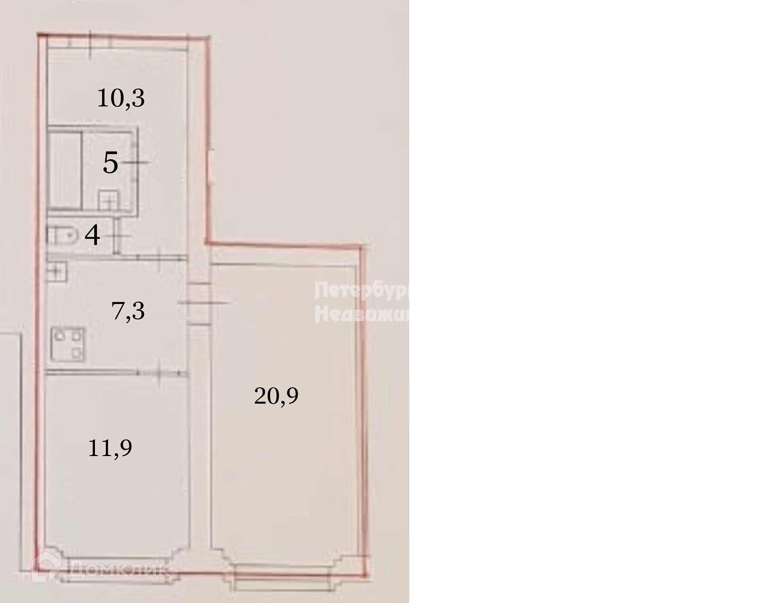 Жилая площадь 32.8 м2