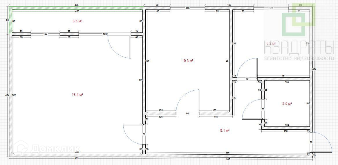 Общая площадь 46.2 м2
