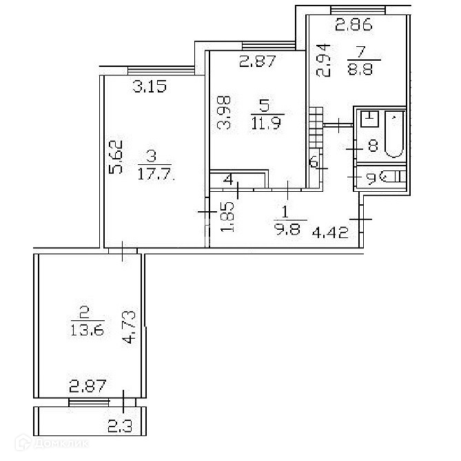 Санузел 1 раздельный