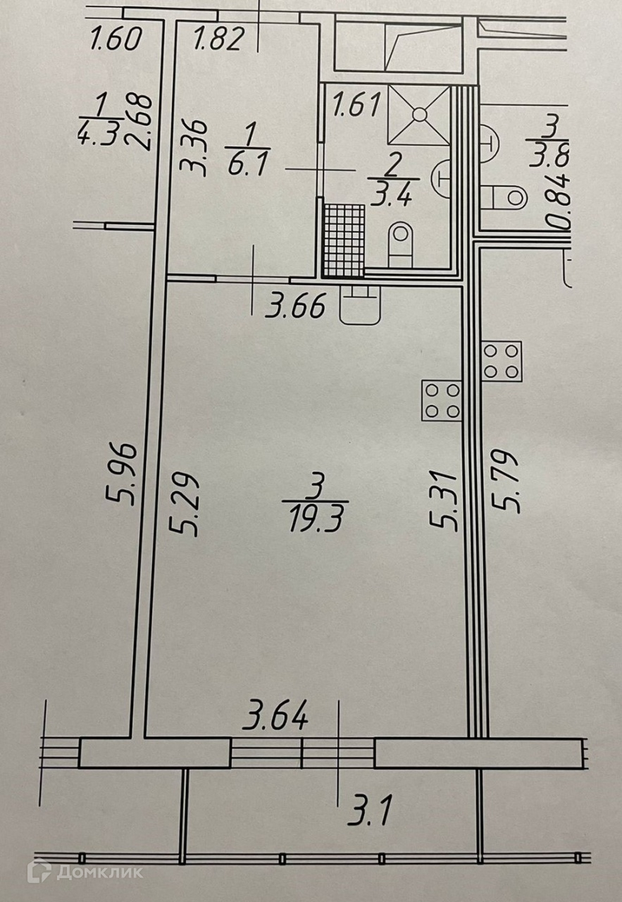 Жилая площадь 19.3 м2