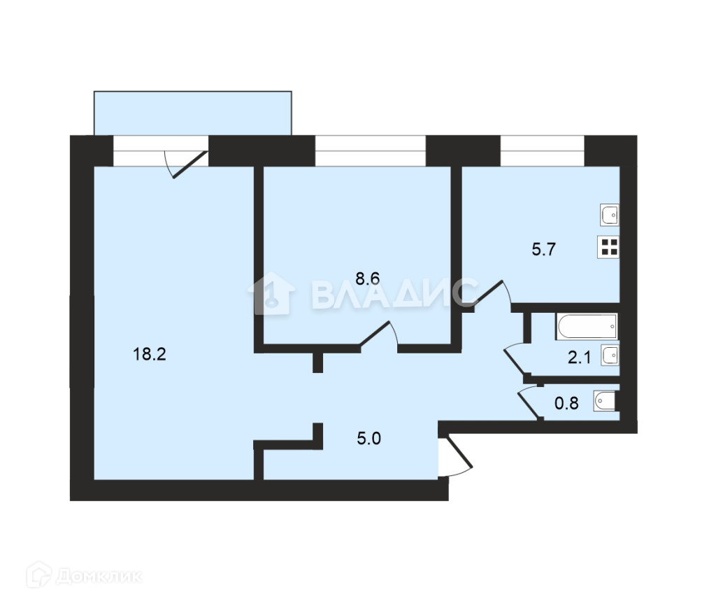 Жилая площадь 26.8 м2